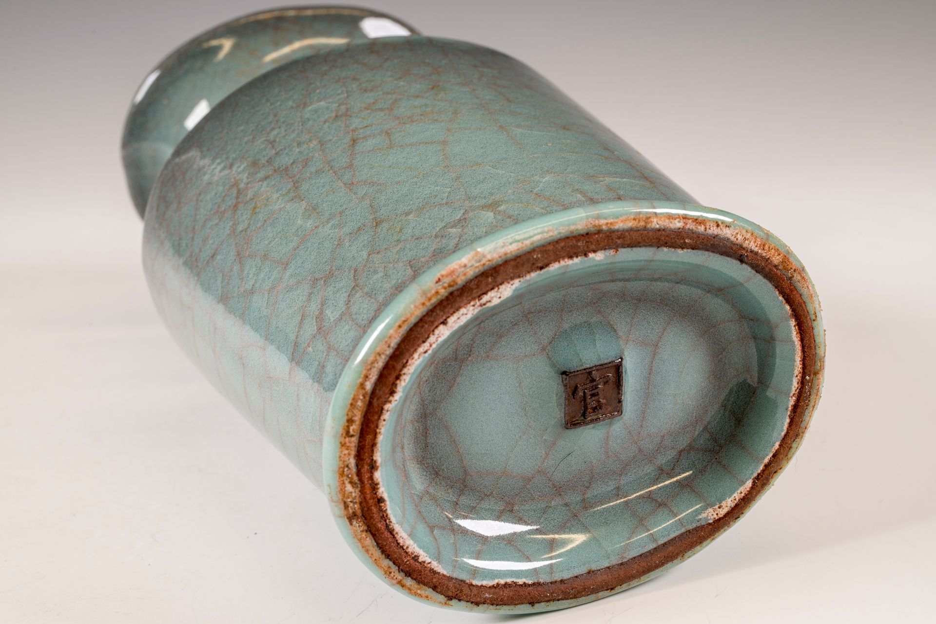 Vase Guan Yao de la dynastie Song du Sud : Vase impérial Guan officiel de Xiuneisi, four intérieur, marqué Hu,