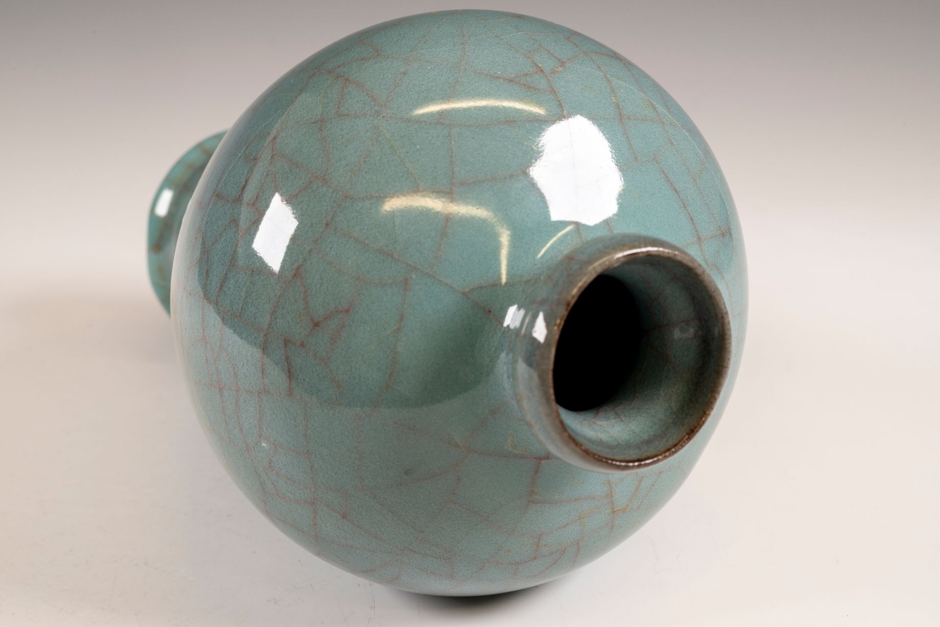 Vase-bouteille double en forme de gourde, marque et datant de la dynastie Song du Sud, fabriqué par Guan Yao à Xiuneisi (four intérieur).