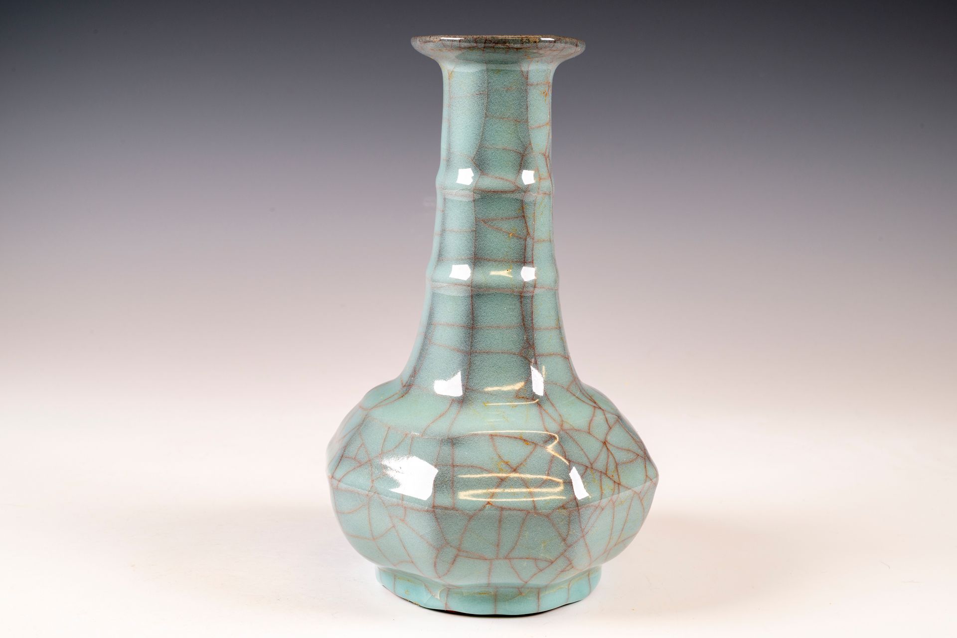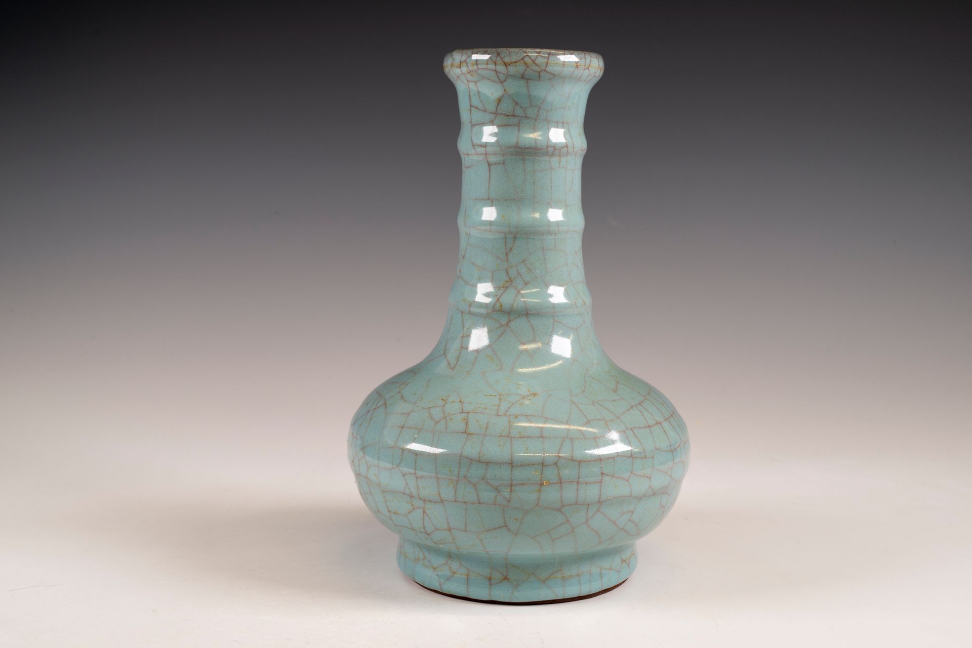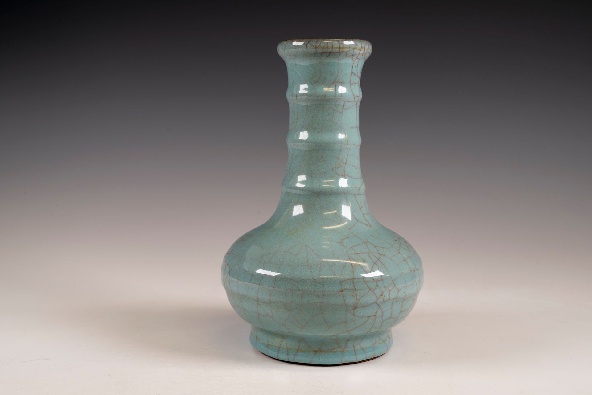 Vase-bouteille impérial Guan Ware à col en bambou, provenant du four intérieur de Xiuneisi, marqué et produit sous la dynastie Song du Sud.