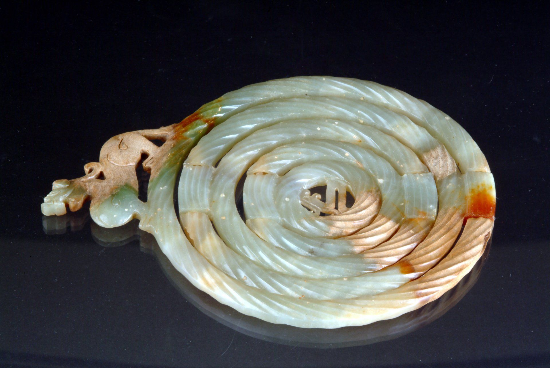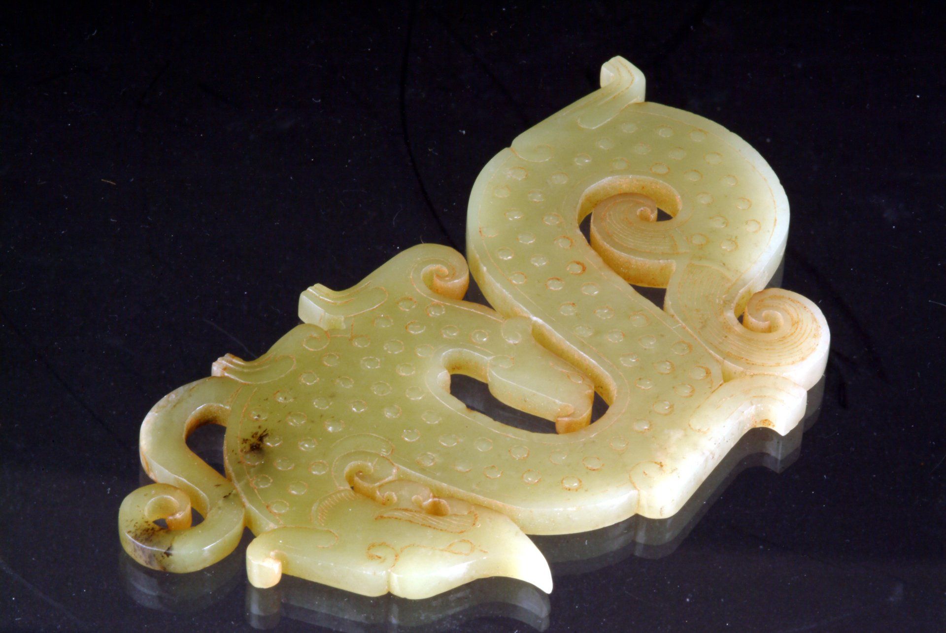 Pendentif ruban de jade orné d'un dragon, dynastie Zhou orientale, période des Royaumes combattants.