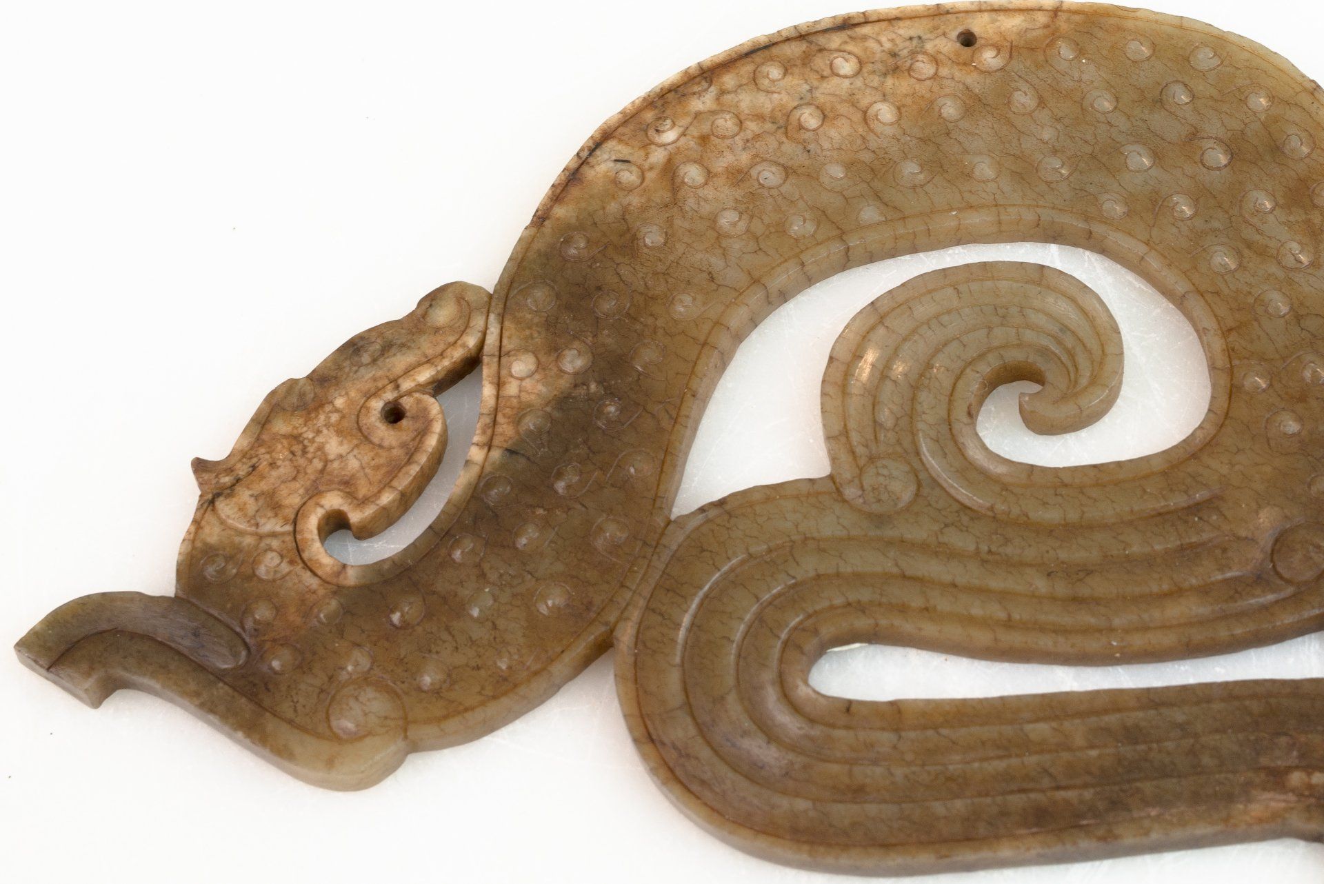 Pendentif dragon stylisé en jade blanc chinois : un reflet de la période des Royaumes combattants