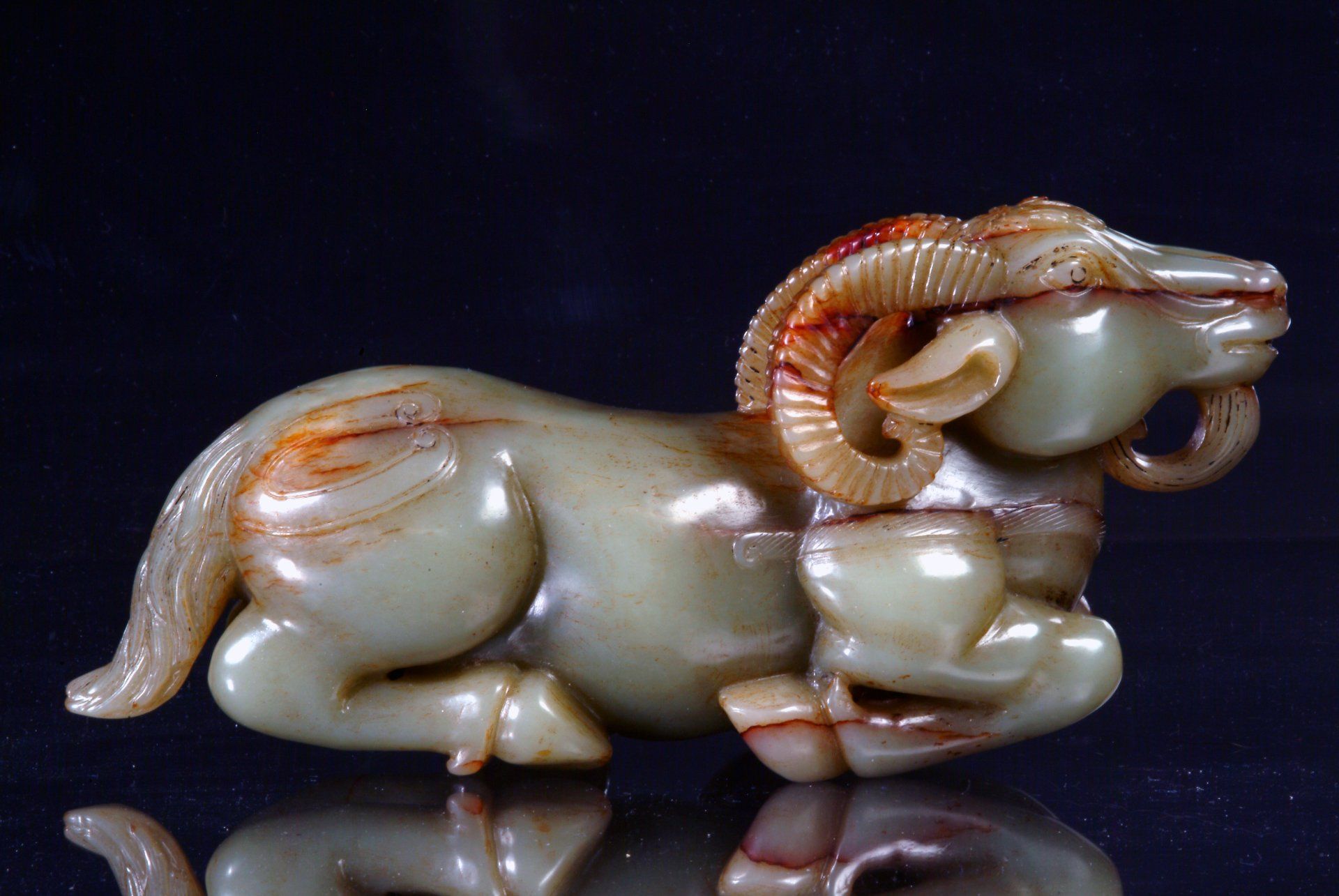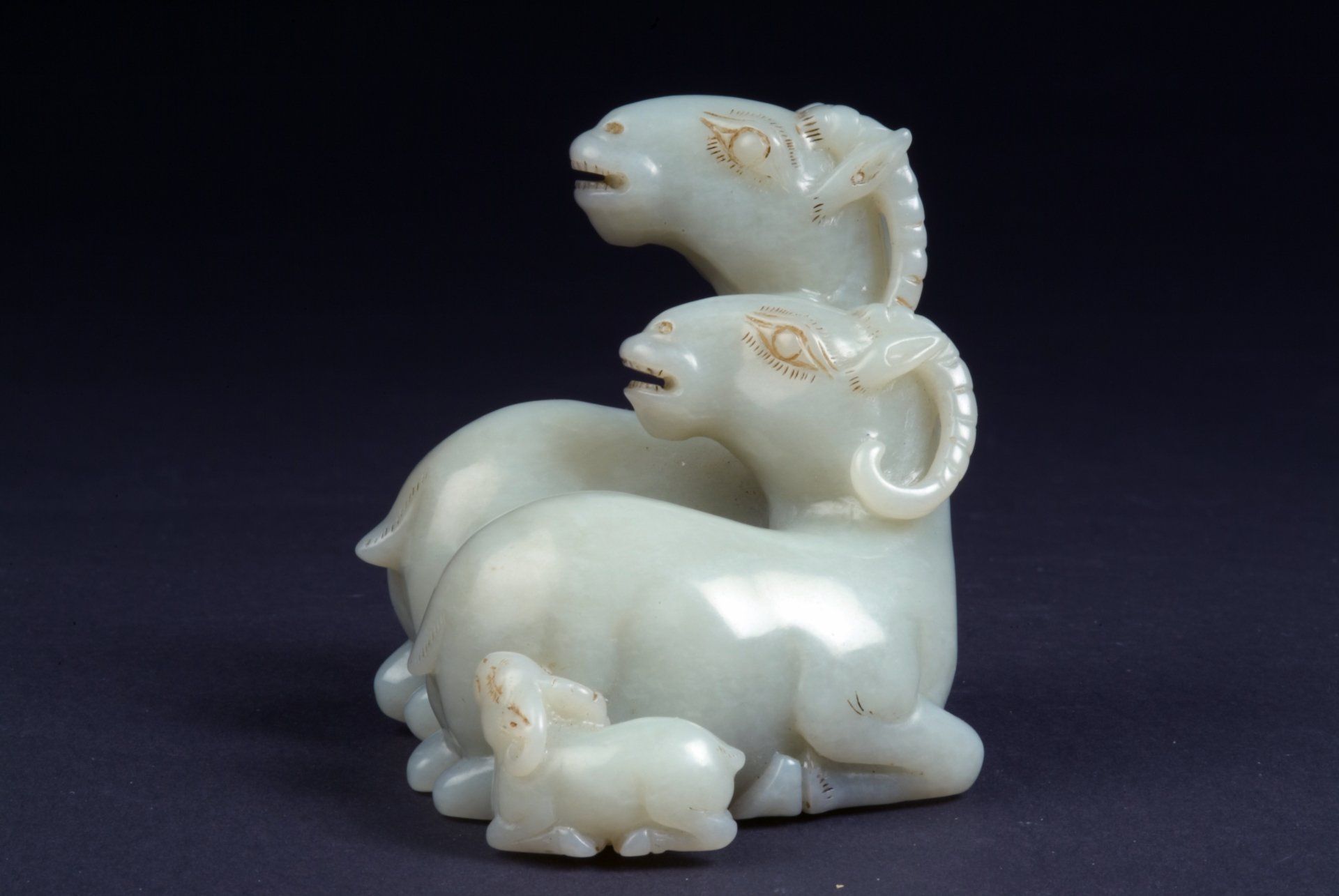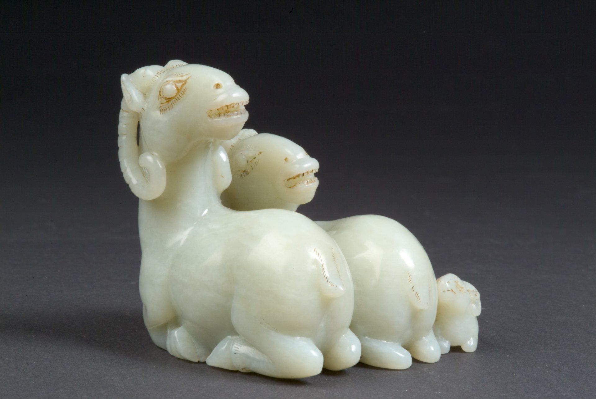 Statue en jade blanc de trois béliers couchés de la dynastie Ming