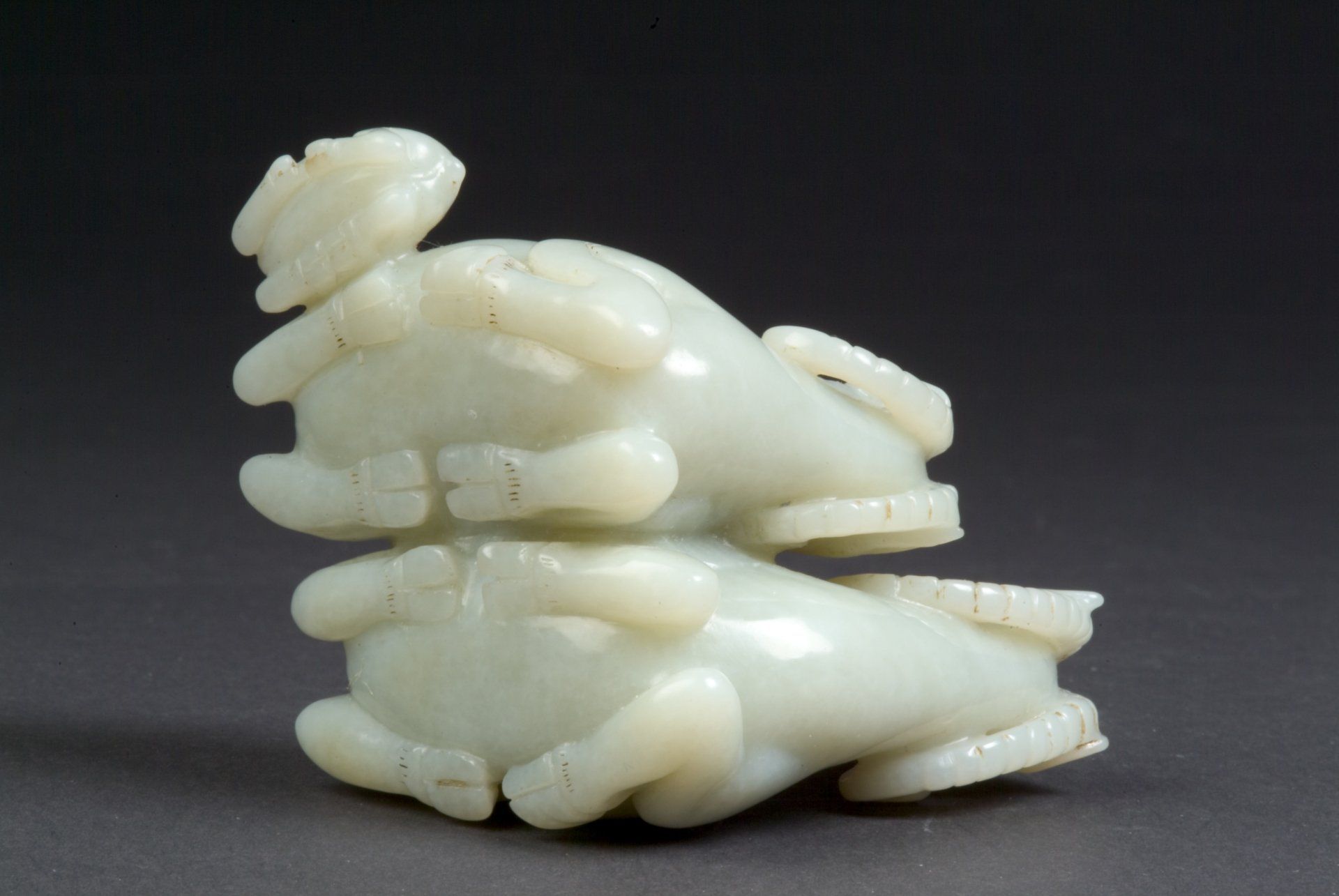 Statues de jade gris de la dynastie Ming représentant des bêtes mythiques à cornes