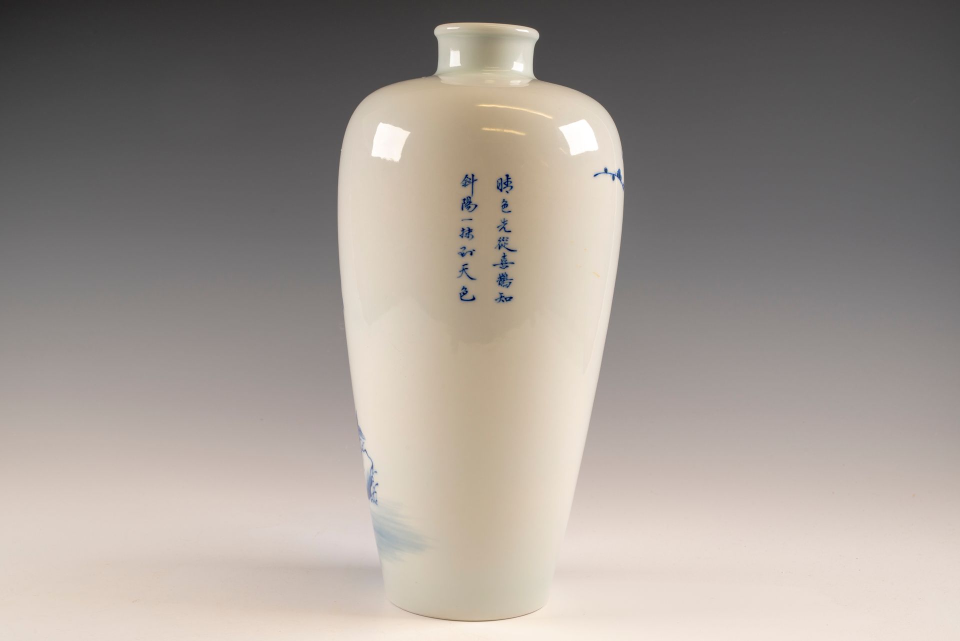 Ce vase Kangxi de la dynastie Qing, d'une authenticité remarquable, présente une forme raffinée, caractéristique de l'époque. Ce vase bleu et blanc est élégamment orné de motifs de rochers, de pivoines et de deux pies perchées sur une branche, complétés par une inscription poétique au revers. Le souci du détail, l'équilibre des tons et les nuances sont essentiels pour apprécier les caractéristiques qui définissent un exemple exceptionnel de porcelaine bleu et blanc Kangxi. Le vase porte la marque Kangxi sous couverte à six caractères, inscrite dans un double cercle à sa base. Cette pièce remarquable, d'une facture experte, mesure environ 32 cm de hauteur. ppjrs