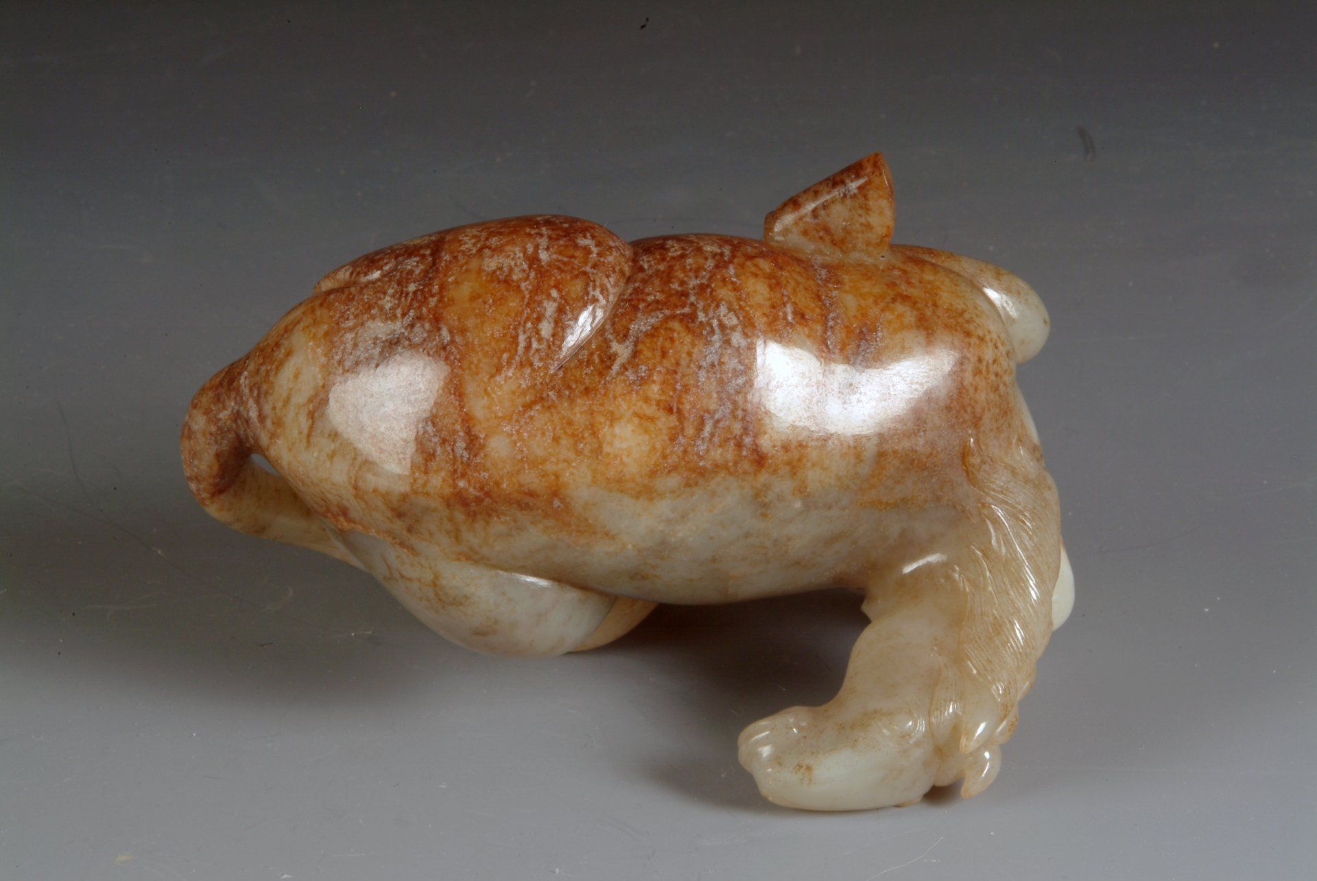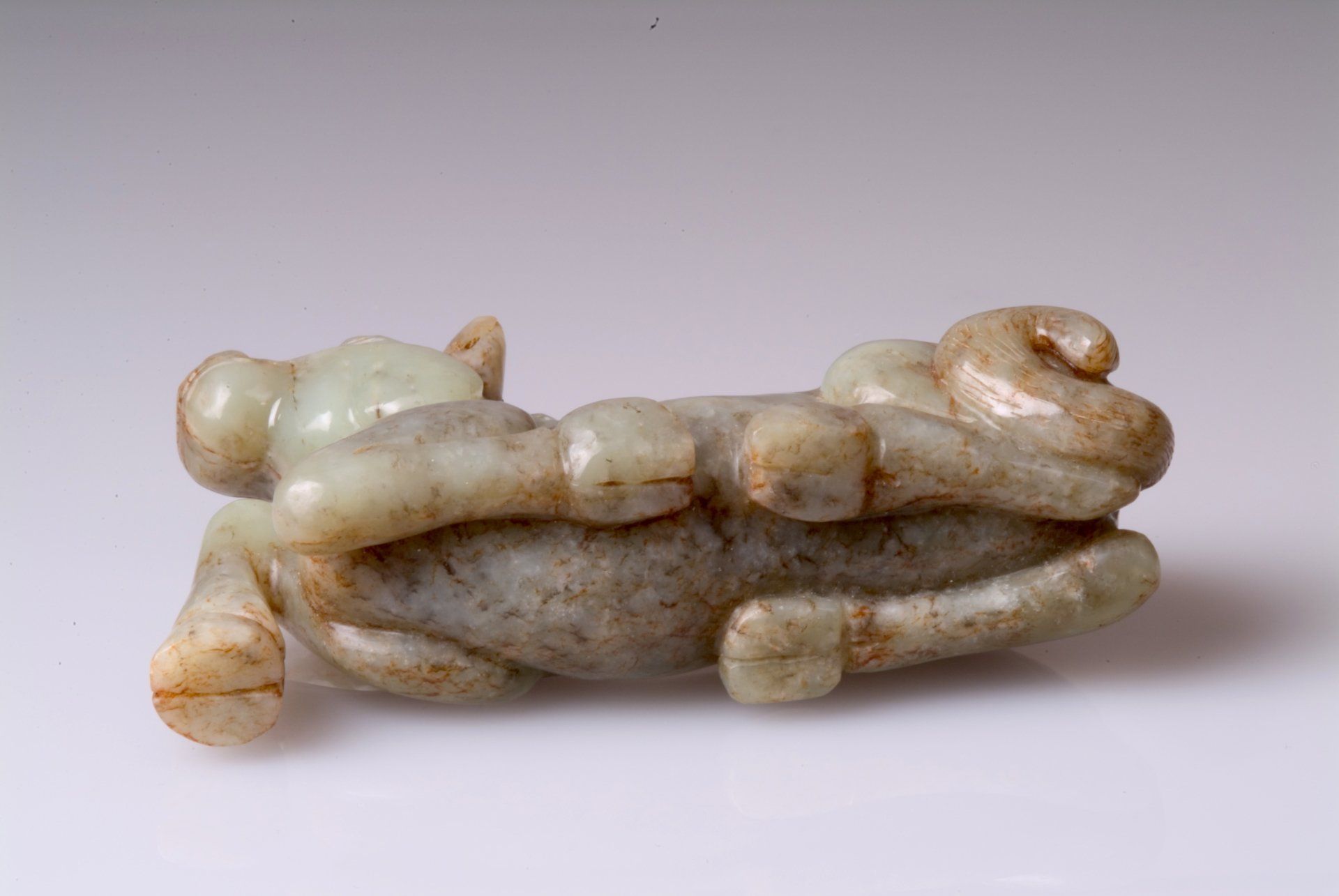 Statue de chien en jade vert grisâtre de la période des Six Dynasties