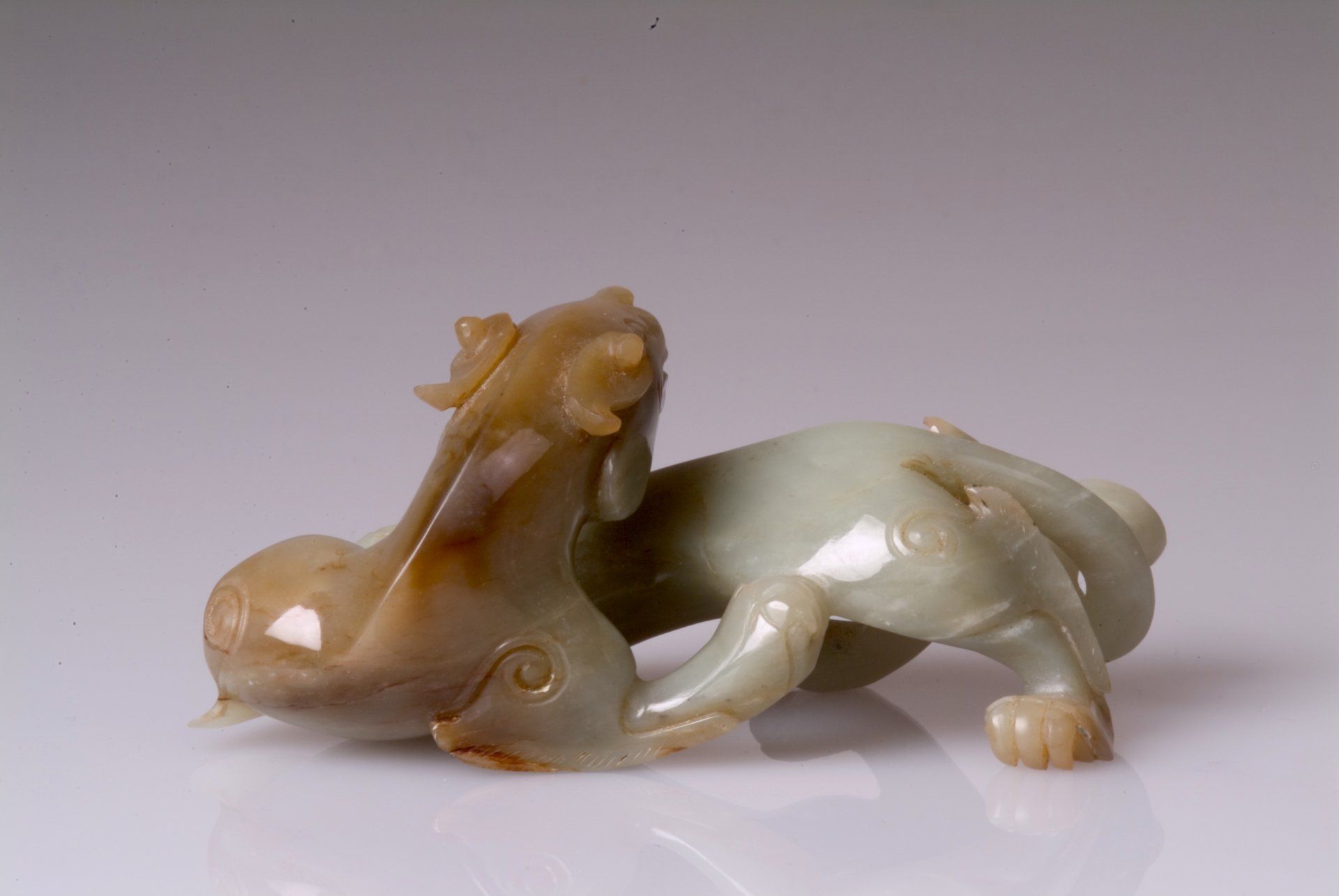Statue en jade céladon d'une créature mythique de la période des Six Dynasties