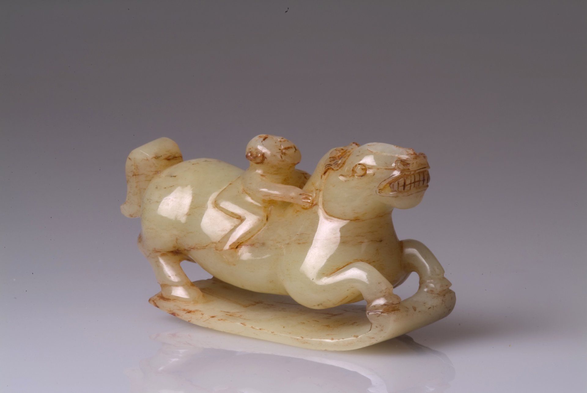 Figurine de cheval en jade blanc des Six Dynasties accompagnée de singes