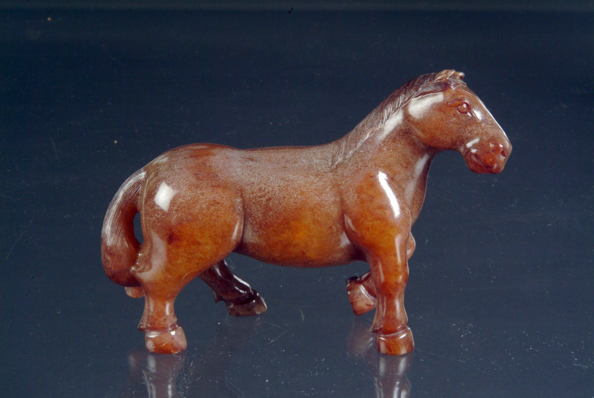 Sculpture de cheval debout en jade de l'époque des Six Dynasties