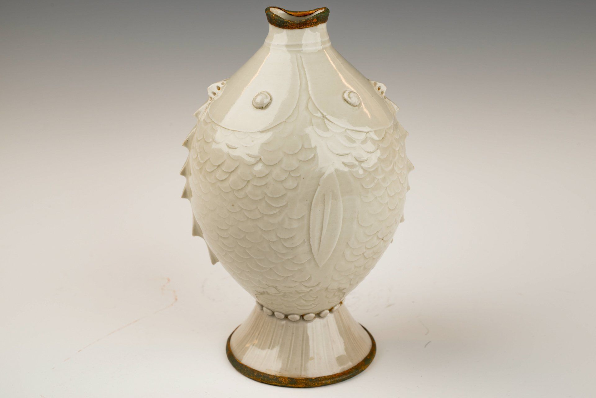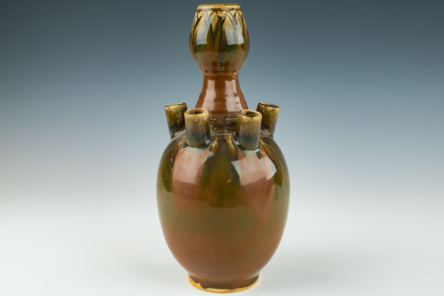Vase Ding Kiln à glaçure kaki avec anses en forme d'aile
