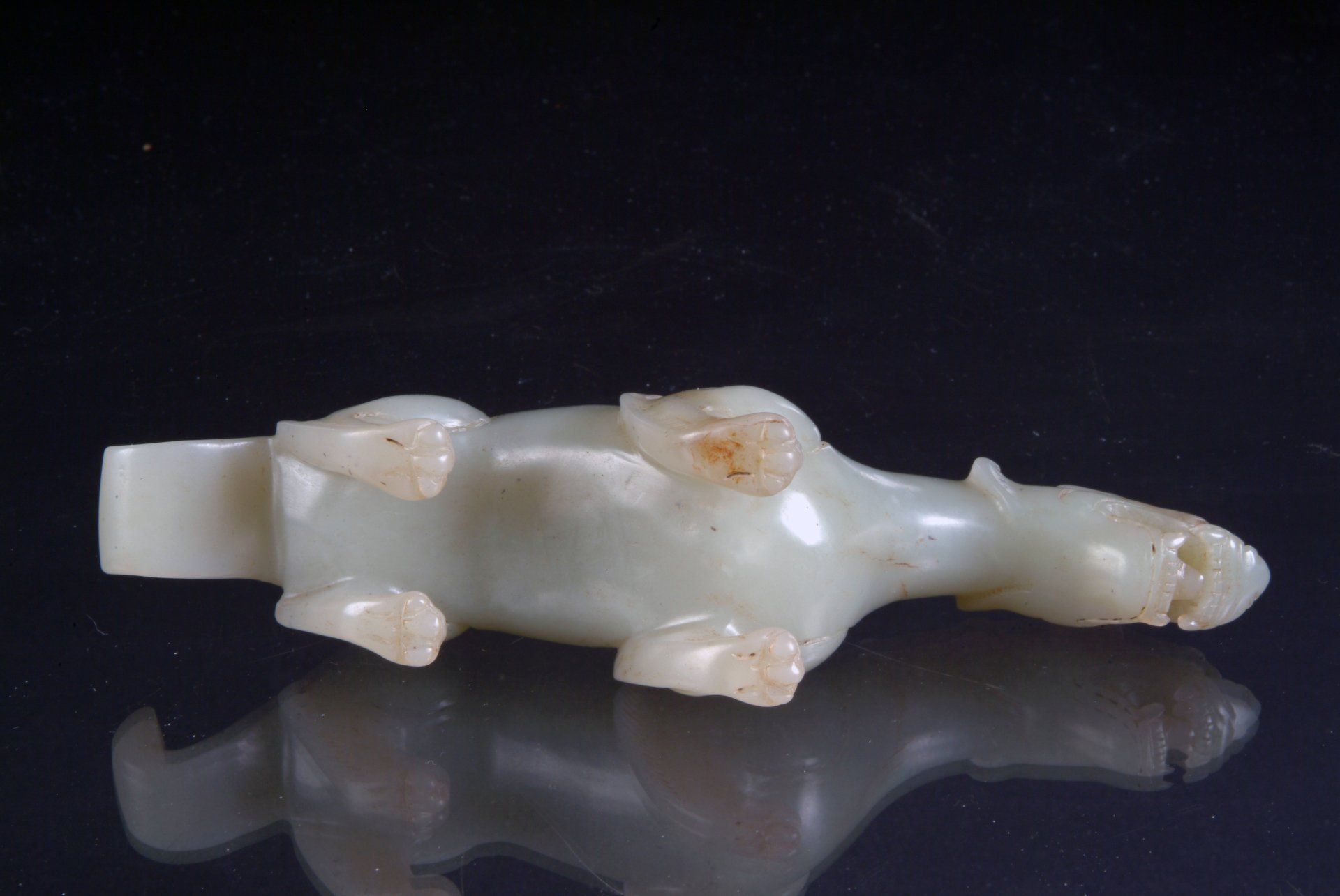 Sculpture en jade gris-blanc de la dynastie Tang représentant une créature mythique