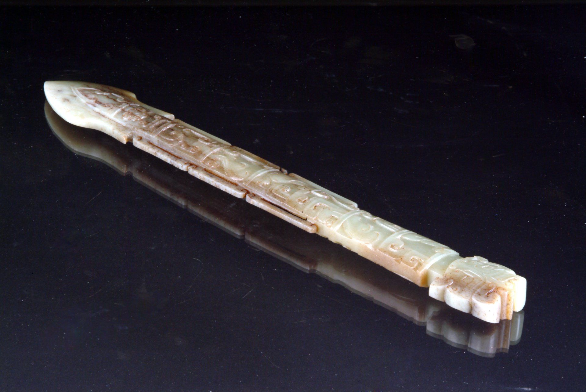 Han Dynasty Expertly Designed Grayish-White Chinese Jade Scepter Ornament