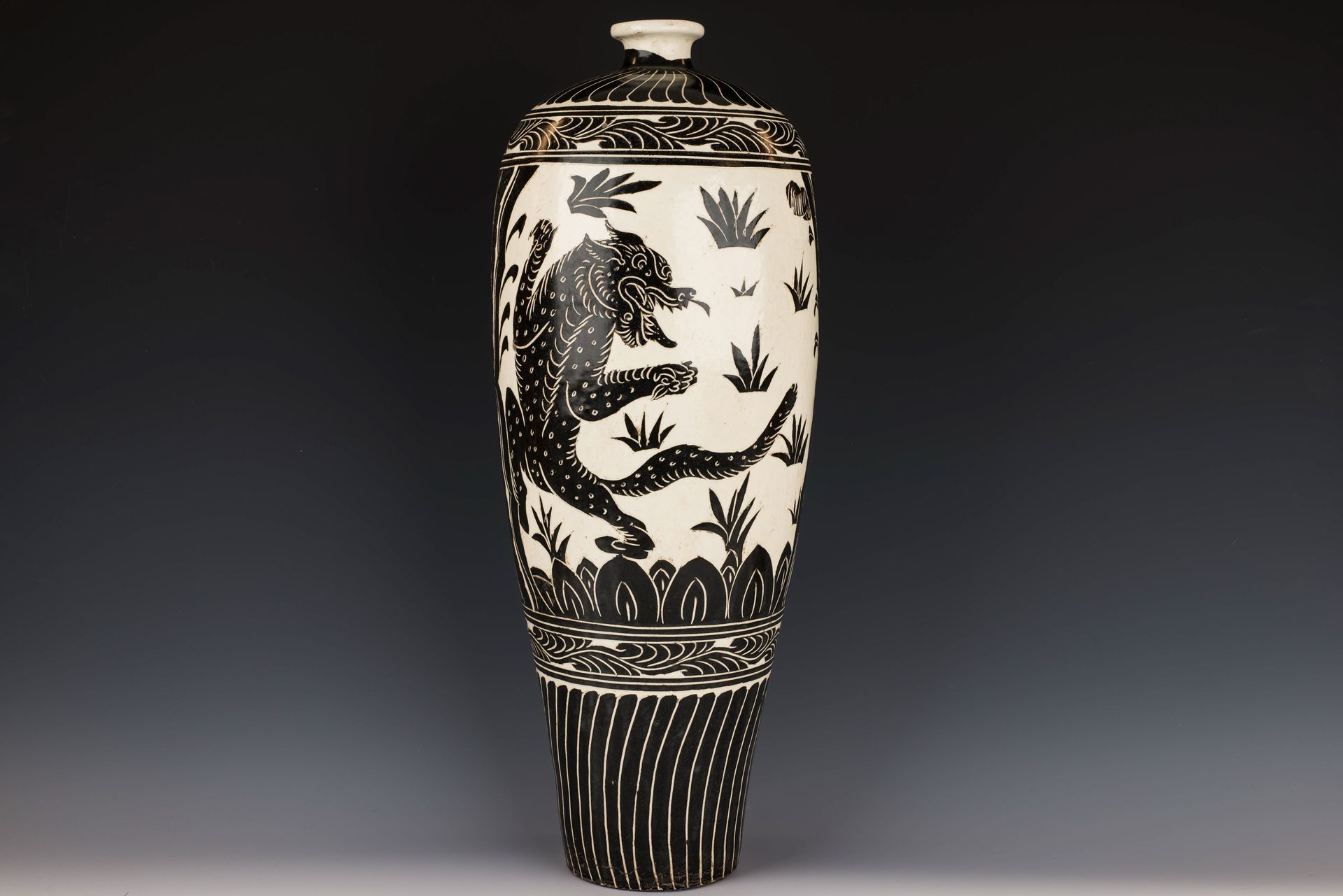 אגרטל דרקון מייפינג זה, מתוצרת שושלת סונג, מתוצרת צ'יג'ואו, מתאפיין בכבשן צ'יג'ואו, וכולל מסגרת לבנה עם דרקון חרוט ומורכב צבוע בשחור על רקע ביסקוויט בצבע אפרפר-צהבהב. אגרטל זה עשוי לייצג דוגמה מוקדמת, שכן פריטים מאוחרים יותר מציגים עיצובי דרקון מורכבים יותר. בנוסף, נוכחות קילופים על הביסקוויט מעידה על גילו. גובה האגרטל הוא כ-30 ס"מ. ppjrs