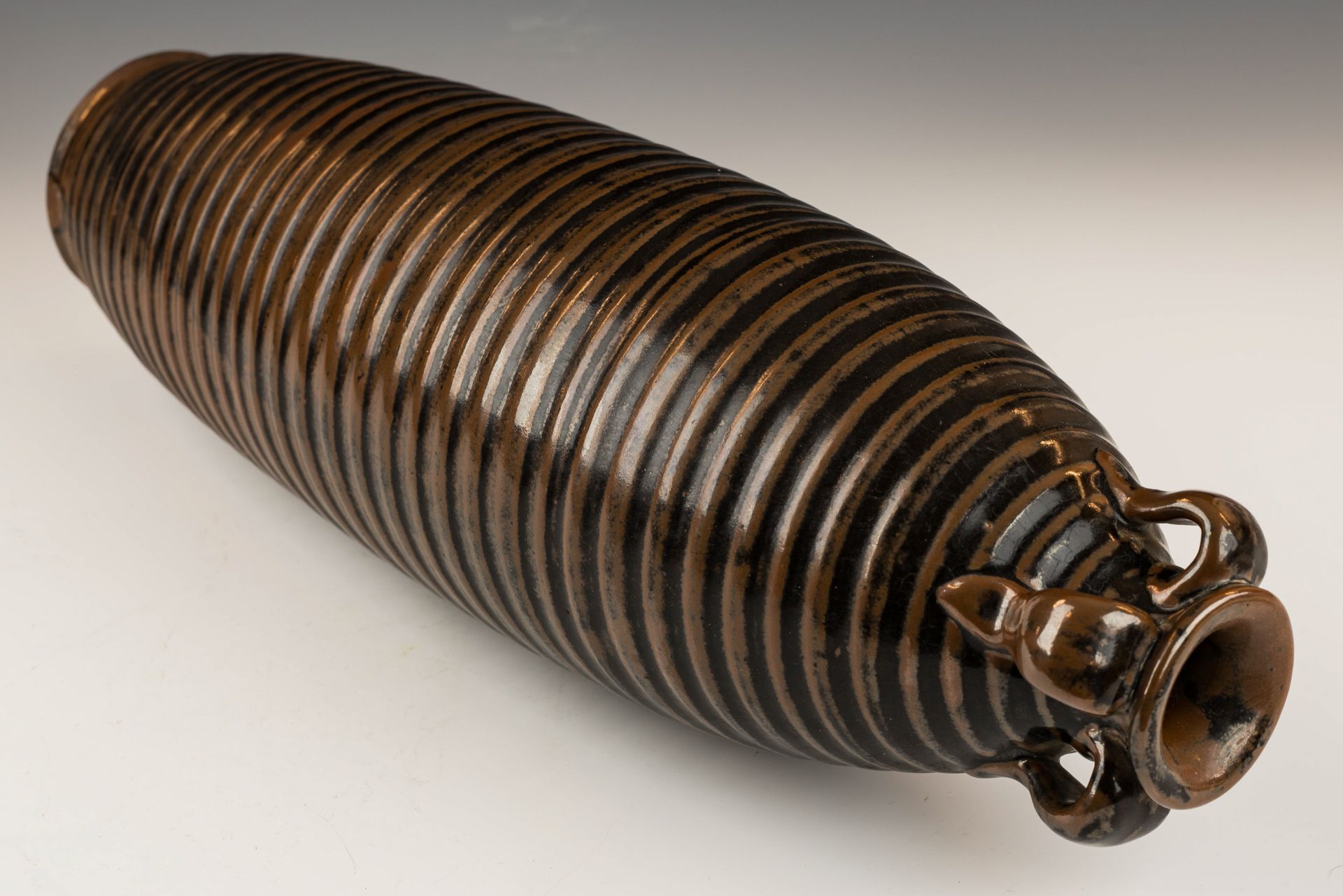 אגרטל בצורת מרקקה קיסרי עם פסים מוזהבים, כנראה מחווה לשושלת סונג הצפונית, כבשן יאו-ג'ואו