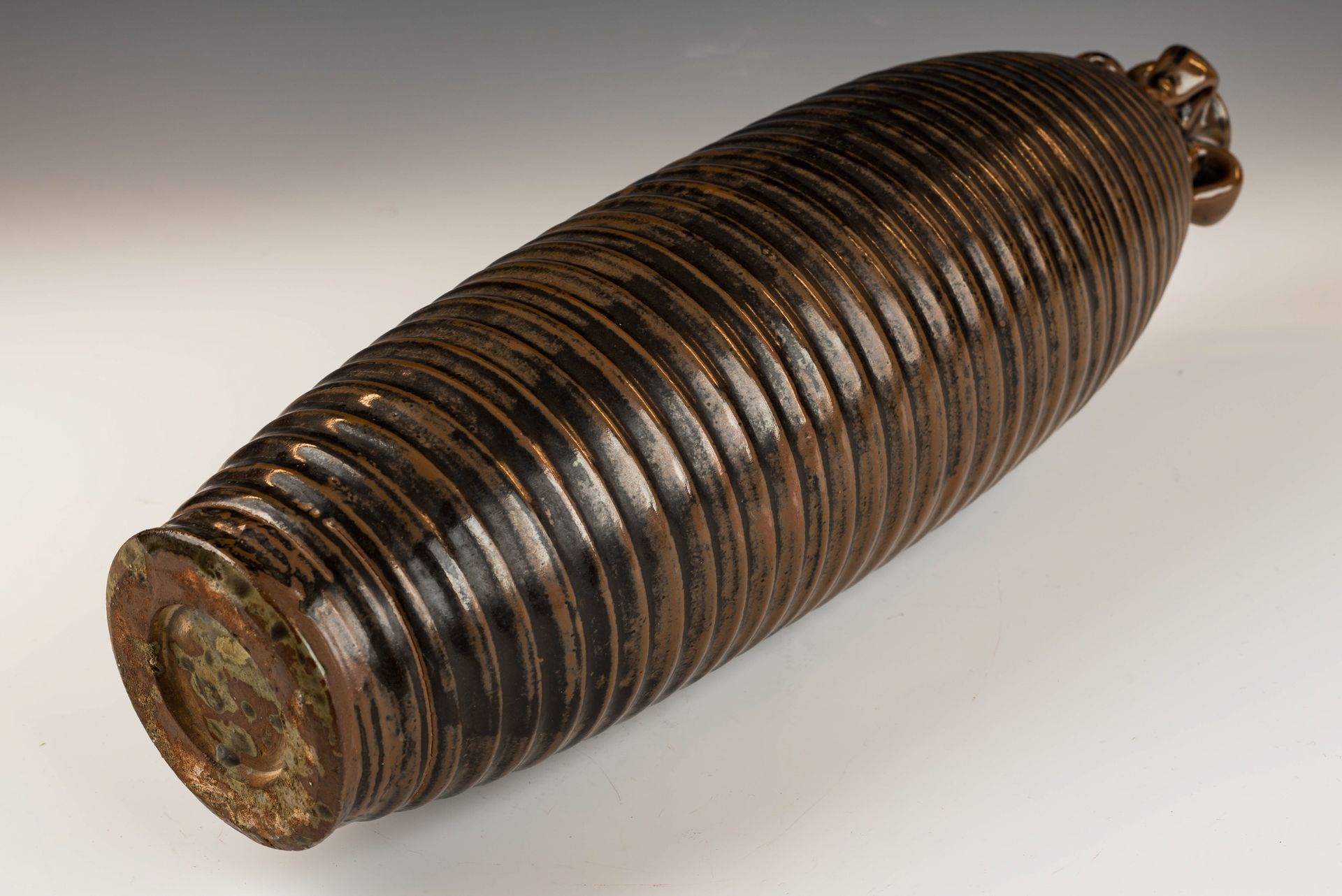 אגרטל בצורת דלעת קיסרית מכבשן יאו-ג'ואו של שושלת סונג הצפונית, מלווה ברצועות מוזהבות באש