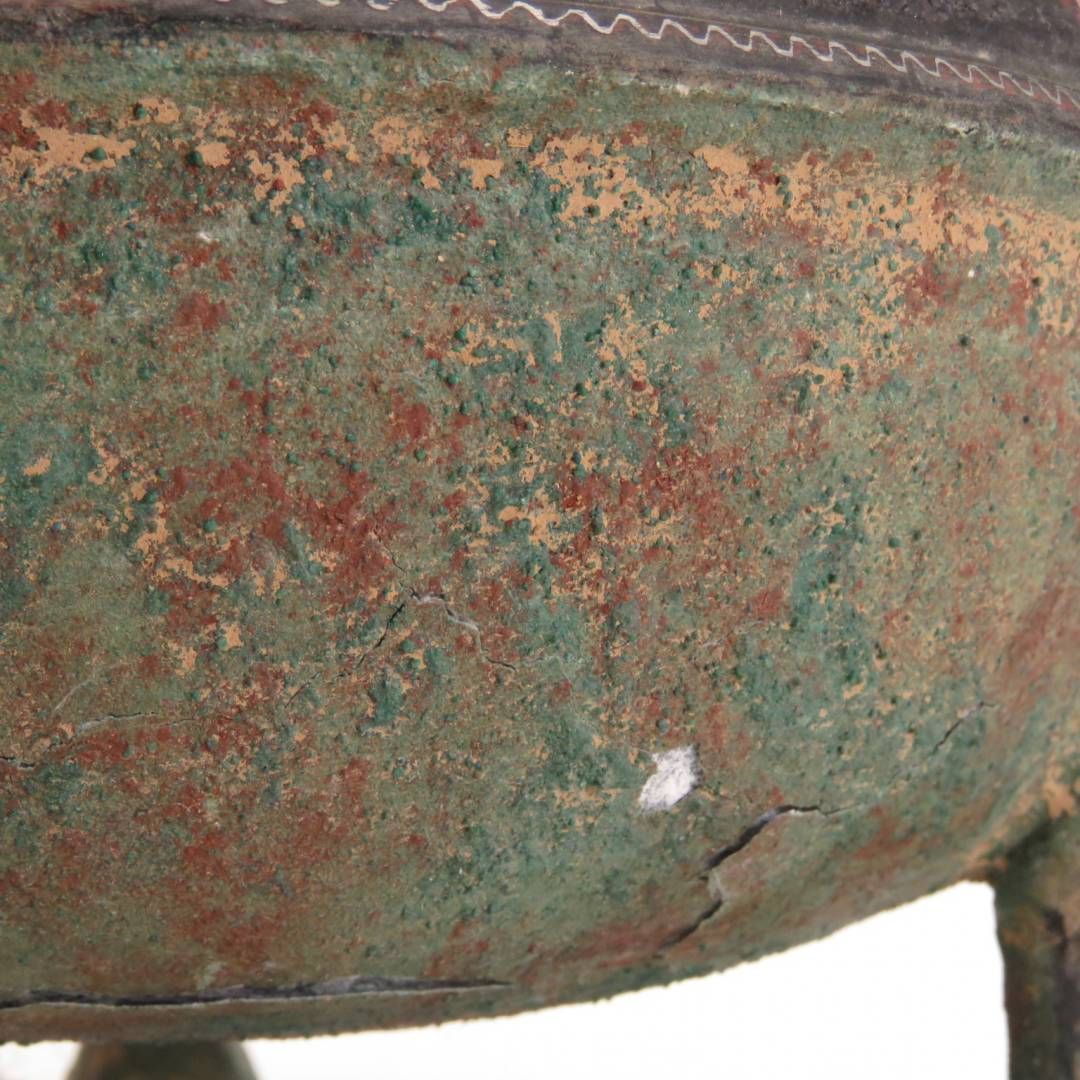 I responded! He Claims to be an expert in Ancient and Archaic Bronzes I explained to Peter Combs that Cuprite and Malachite Corrosion Can't be Faked. I posted on his forum close up photos of the corrosion on the Gilded Copper bands on My Northern Song Dynasty Ru ware. Peter Combs said it was faked and then he used his own Bronze Ding above he posted photos of it which I copied, Peter Combs said the Bronze Ding was a fake and it was made around 2000-2005. and the patina was faked and he claimed he could reproduce this patina easily. Combs has been using this Bronze Ding above for years and it is authentic! You can easily see the Botryoidal Malachite in his last closeup photo. It takes a lot of guile to deceive collectors and tell them their bronzes are fake.