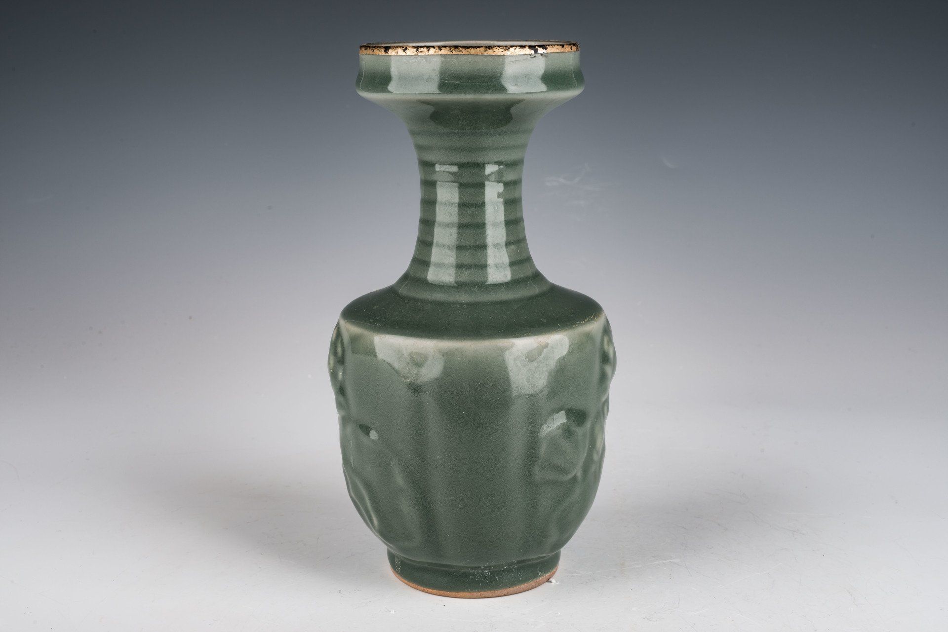 אגרטל ניצני פרחים רשמי חשוב שני משושלת סונג הצפונית, אימפריאלי מלכותי, Ru-Ware, בעל רצועות כסף מלאות סביב טבעת השפה והרגל עם סימן זהב מלא על הבסיס