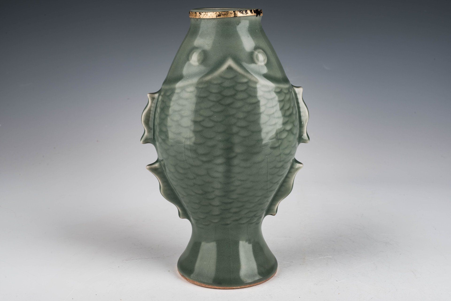 אגרטל רשמי זה, המוערך הראשון שהוזמן, מסוג דג קופץ מהמים, הוא חלק מאוסף נבחר של כלי חרס שיוצרו באופן בלעדי עבור הקיסר הייזונג וחצרו המלכותית. האגרטל, בגובה של 28 ס"מ, מציג צורה אלגנטית המדגימה אומנות מעודנת. זיגוג הסלדון משלב אגט כחול כתוש, הבולט בדוגמת פצפוצי הקרח הייחודית שלו, שניתן להעריך תחת הגדלה באמצעות זכוכית מגדלת פי 20. בנוסף, תמונות מיקרוסקופיות חושפות את נוכחותם של כתמי אגט הסמוכים לתצלומי כל פריט. האגט הכחול הכתוש הנדיר שימש באופן בלעדי בכלי חרס רשמיים של הקיסר הייזונג, סימן היכר של השושלת שפותחה תחת הדרכתו של הקיסר הייזונג. אגרטל ייחודי זה, הבנוי עם גוף אפור עדין שעובר לחום בהיר בעת השריפה, הוא שריד לאוסף השמור של כלי חרס צפוניים של הקיסר הייזונג. ppjrs
