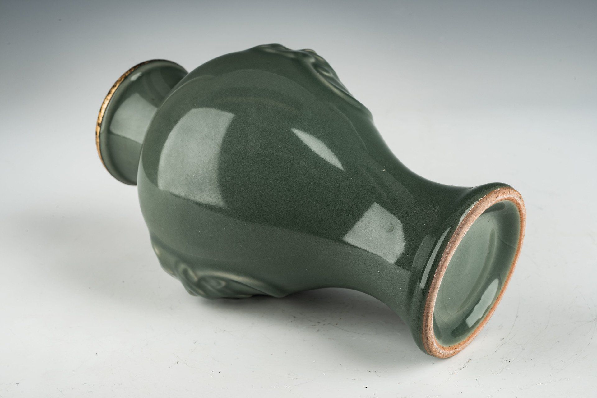 אגרטל זה, בעל ידית דרקון, שהוזמן שנייה כאגרטל רשמי מסוג Ru, נדיר במיוחד, מוכר בין כלי הסלדון המשובחים והמפוארים ביותר שיוצרו אי פעם בסין. אגרטל זה, שיוצר באופן בלעדי עבור הקיסר הייזונג וחצרו, מדגים את פסגת האומנות הקיסרית. הוא כולל זיגוג סלדון יוצא דופן המאופיין במרקם עשיר, גימור חלק ופצפוץ עדין, המעידים על האומנות המיומנת המעורבת. ראוי לציין כי אגט כתוש שולבה בתערובת הזיגוג, שניתן לצפות בה תחת זכוכית מגדלת פי 20. תצלומים מיקרוסקופיים המלווים כל פריט מאירים עוד יותר את כתמי האגט המשובצים בזיגוג. השימוש באגט כחול כתוש ייחודי לכלי הסלד הרשמיים של הקיסר הייזונג. בנוסף, האגרטל מעוטר בפס כסף מצופה זהב סביב השפה. לציפוי הזהבה באש על פסי הכסף יש נקבוביות, המאפשרות לכתמים לחלחל דרך הנקבוביות, וכתוצאה מכך קורוזיה שחורה בולטת על הפסים. גוף האגרטל מציג גוון לבן-שבור שפיתח גוון חום לאחר השריפה. אגרטל זה בעל ידית דרקון מתנשא לגובה מרשים של 9 1/4 אינץ' והוא שייך לאוסף ששרד של כלי חרסינה אימפריאליים של סונג הצפוני מתקופת שלטונו של הקיסר הויסונג.