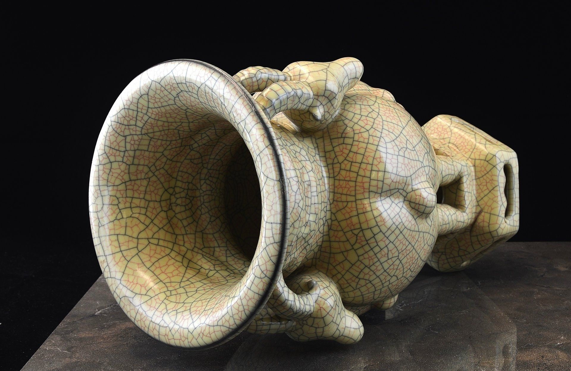 אגרטל Ge Kiln Ge Ware עם צורת Hu וידיות צינור משושלת סונג/יואן הדרומית, כולל רגל ברזל