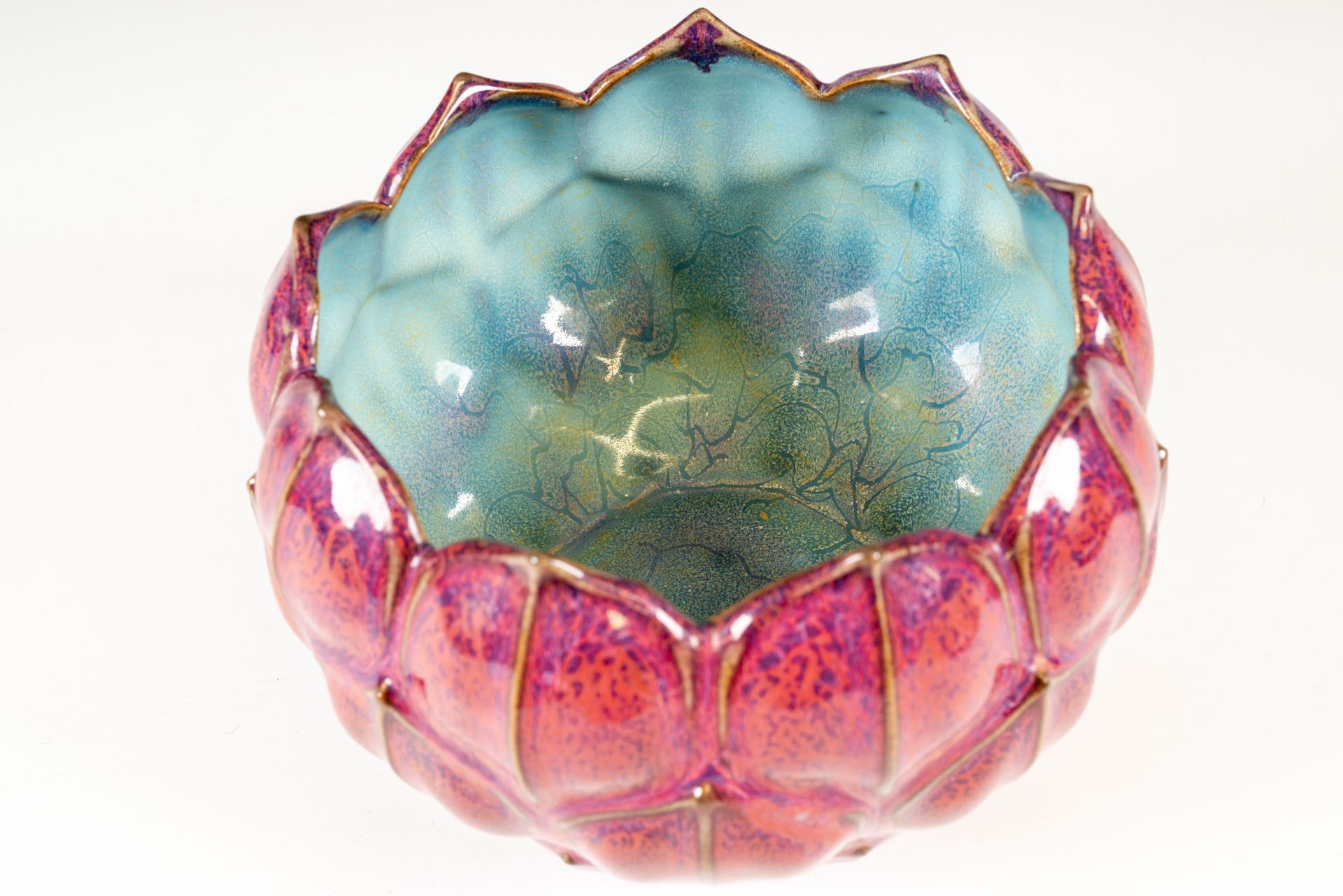 מבער קטורת ג'ון וור משושלת סונג: עוצב בצורת עלי לוטוס עם צד חיצוני אדמדם ו...