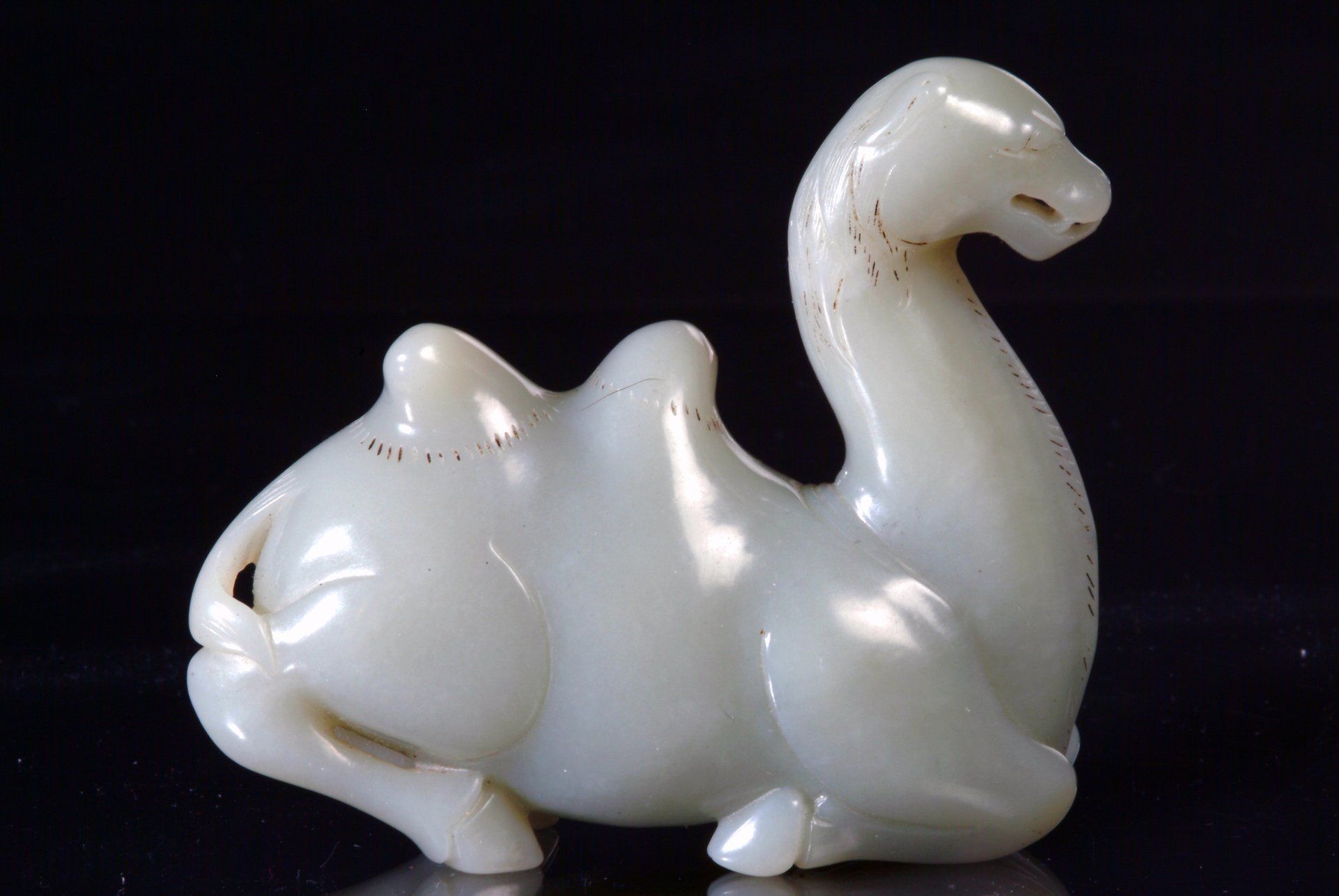 Patung Unta Berbaring dari Dinasti Qing dari Batu Giok Abu-abu Pucat