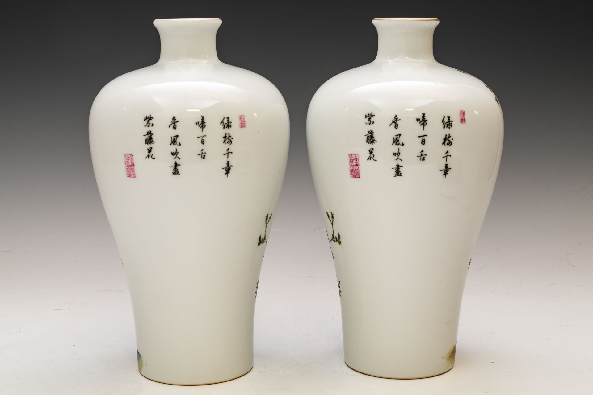 Sepasang Vas Meiping Enamel Falangcai dari Dinasti Qing, Tanda Kekaisaran dan Periode Yongzheng