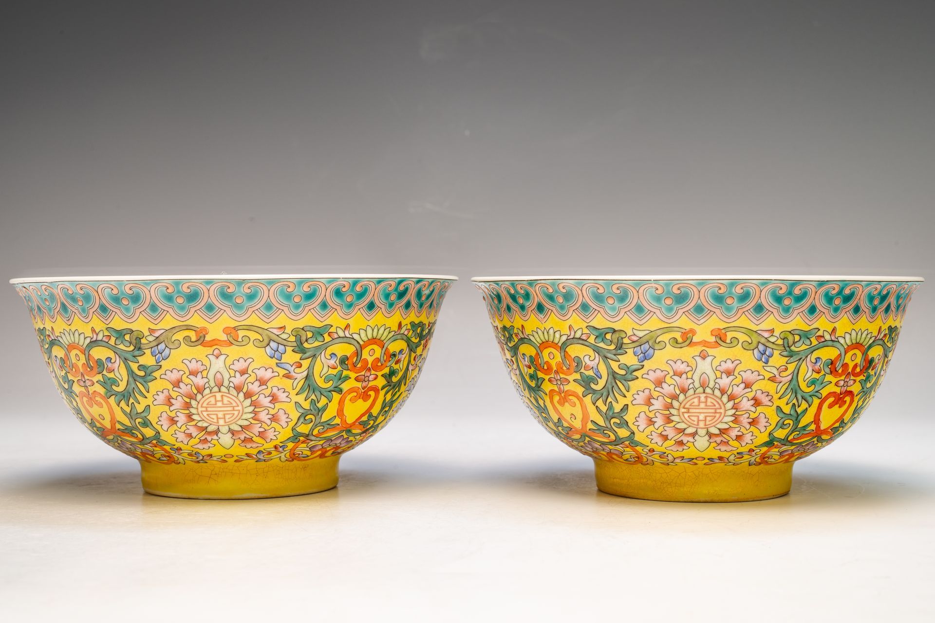 Sepasang Mangkuk Enamel Falangcai Kuning Kangxi Dinasti Qing Kekaisaran, Menampilkan Tanda Yuzhi Empat Karakter Merah Muda Tua dalam Kotak Ganda, Berasal dari Periode Kangxi
