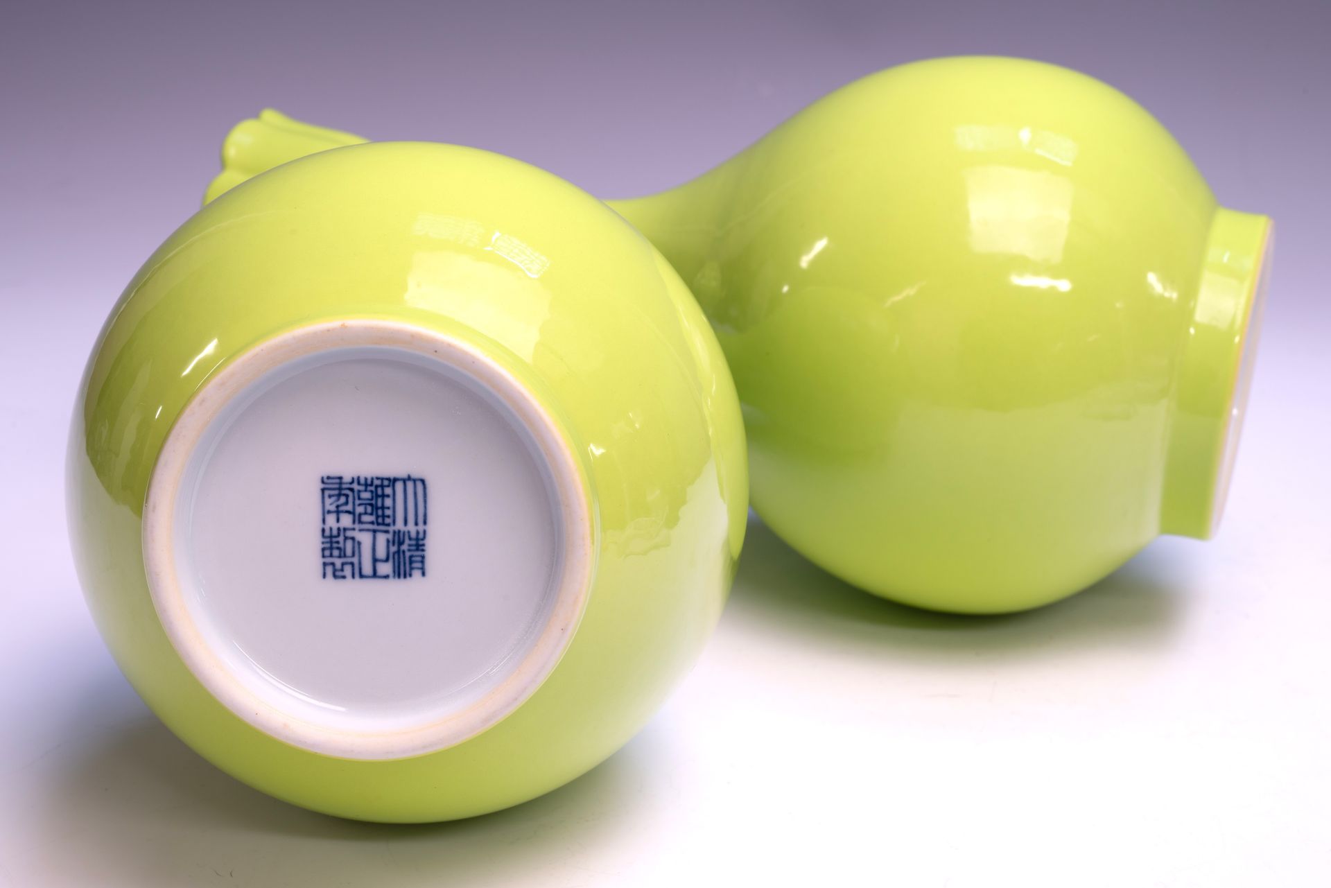 Sepasang Vas Bertanda Segel Yongzheng Kekaisaran Dinasti Qing dan Vas Mulut Bawang Putih Monokrom Chartreuse Langka Periode