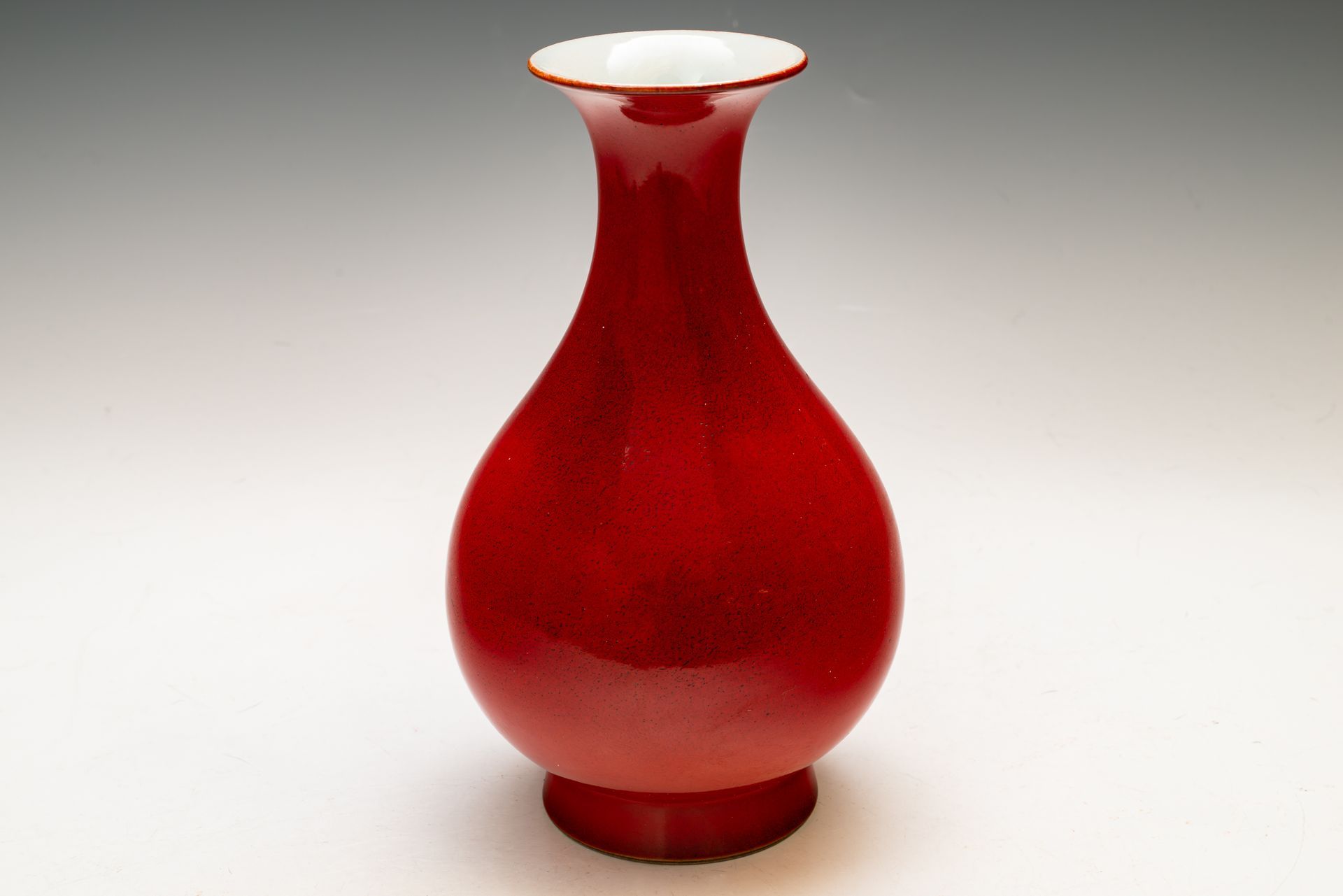 Vas indah ini, yang berasal dari Dinasti Qing, khususnya periode Daoguang, menampilkan desain berbentuk buah pir. Vas ini dibuat dengan sangat ahli, menampilkan rona merah yang sangat kaya dan memikat secara visual. Vas ini menunjukkan adanya pengelupasan pada biskuitnya, yang menunjukkan usianya, dan ditandai dengan enam karakter Daoguang di bagian dasarnya. Tinggi vas sekitar 20 cm. ppjrs