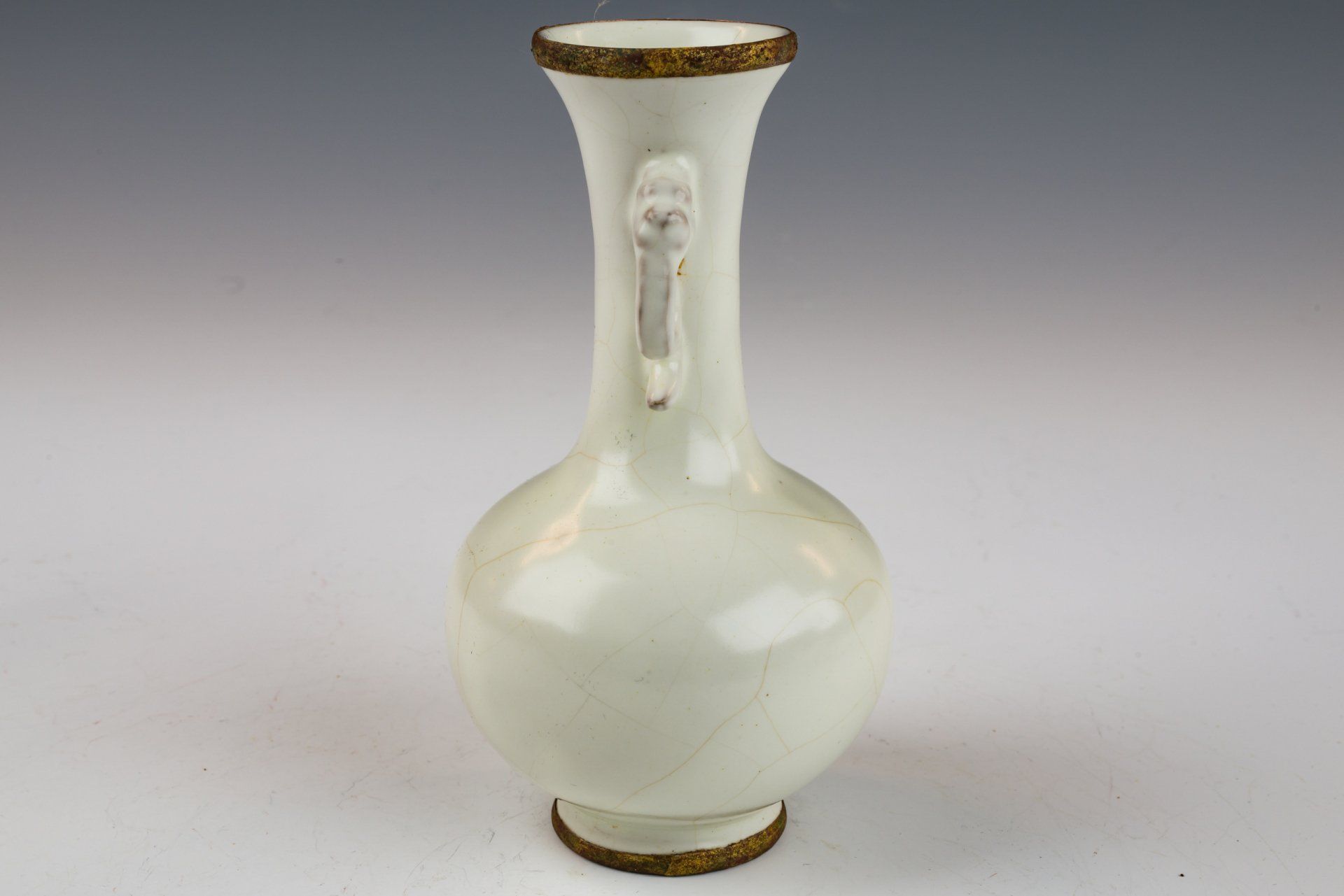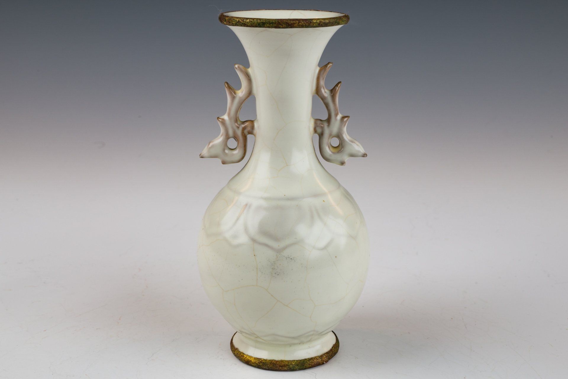 Vas Imperial Ru Ware Moonlight Putih dengan Pegangan Naga dari