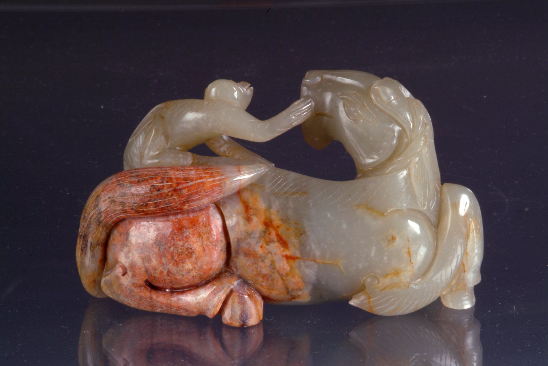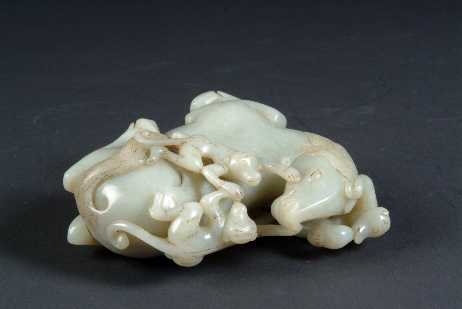 Patung Kuda Ditemani Monyet dari Batu Giok Putih Keabu-abuan Enam Dinasti