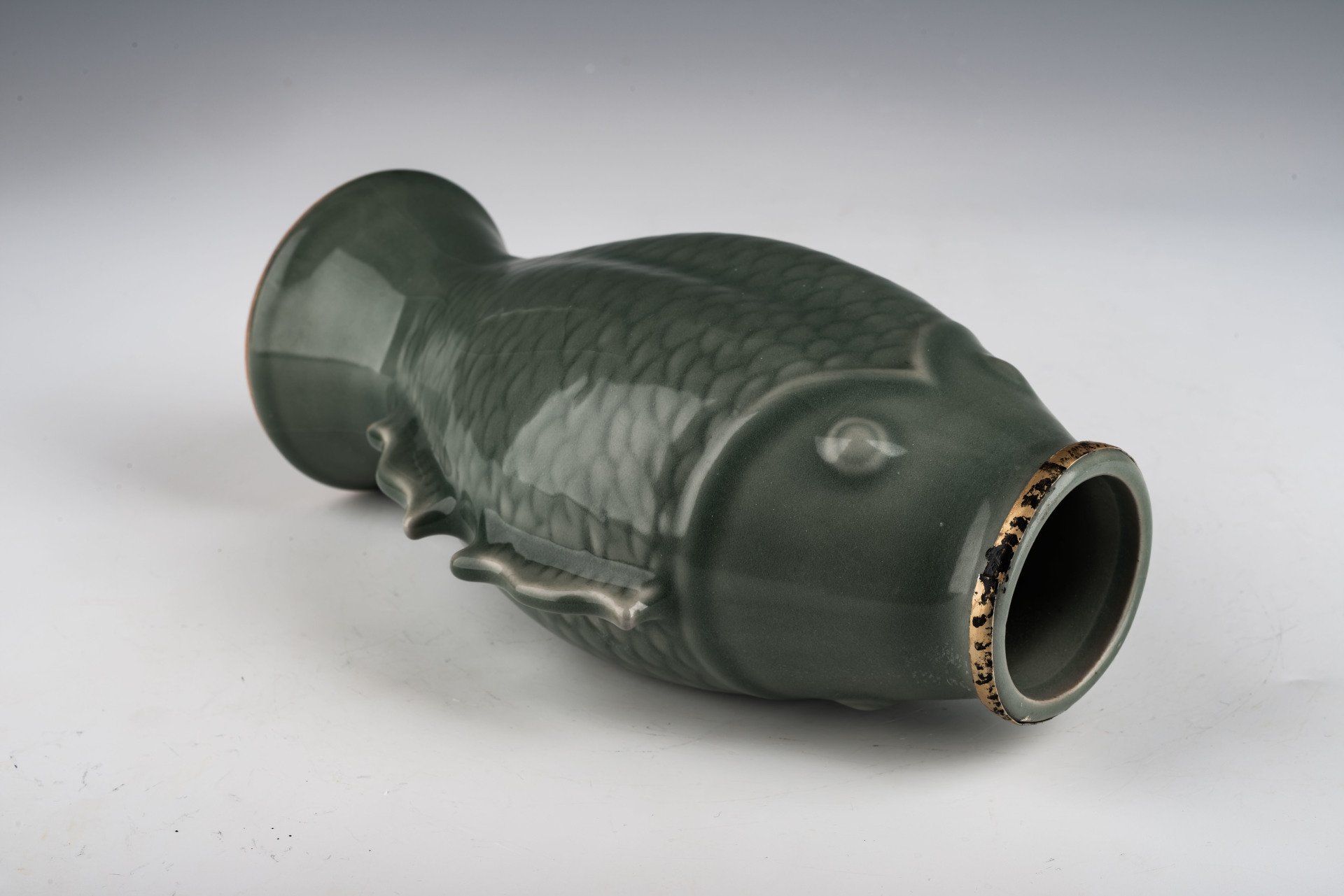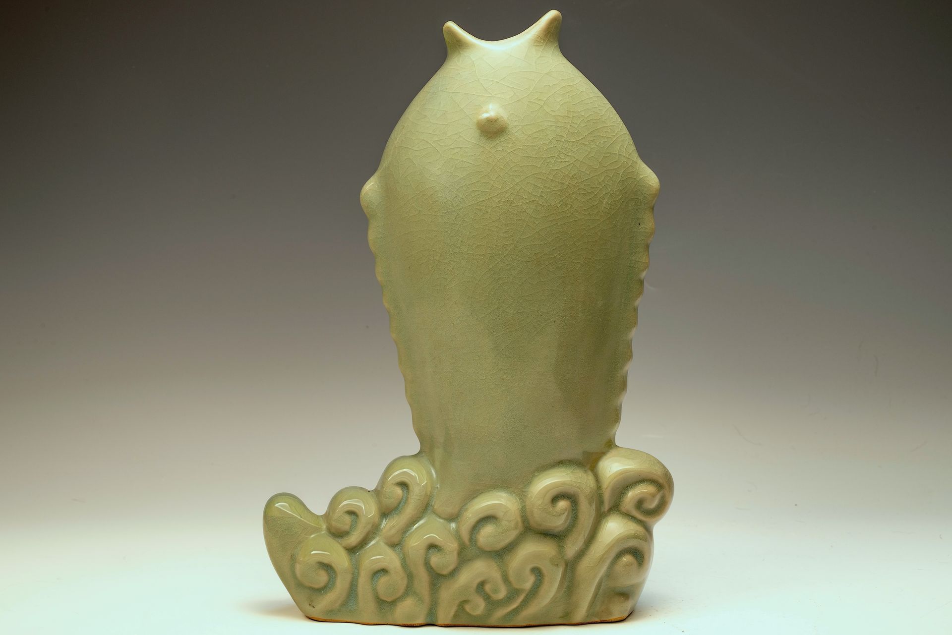 First Commissioned Official Vase from the Northern Song Dynasty: Imperial Ru-Ware Vessel Depicting Fish Leaping from Water