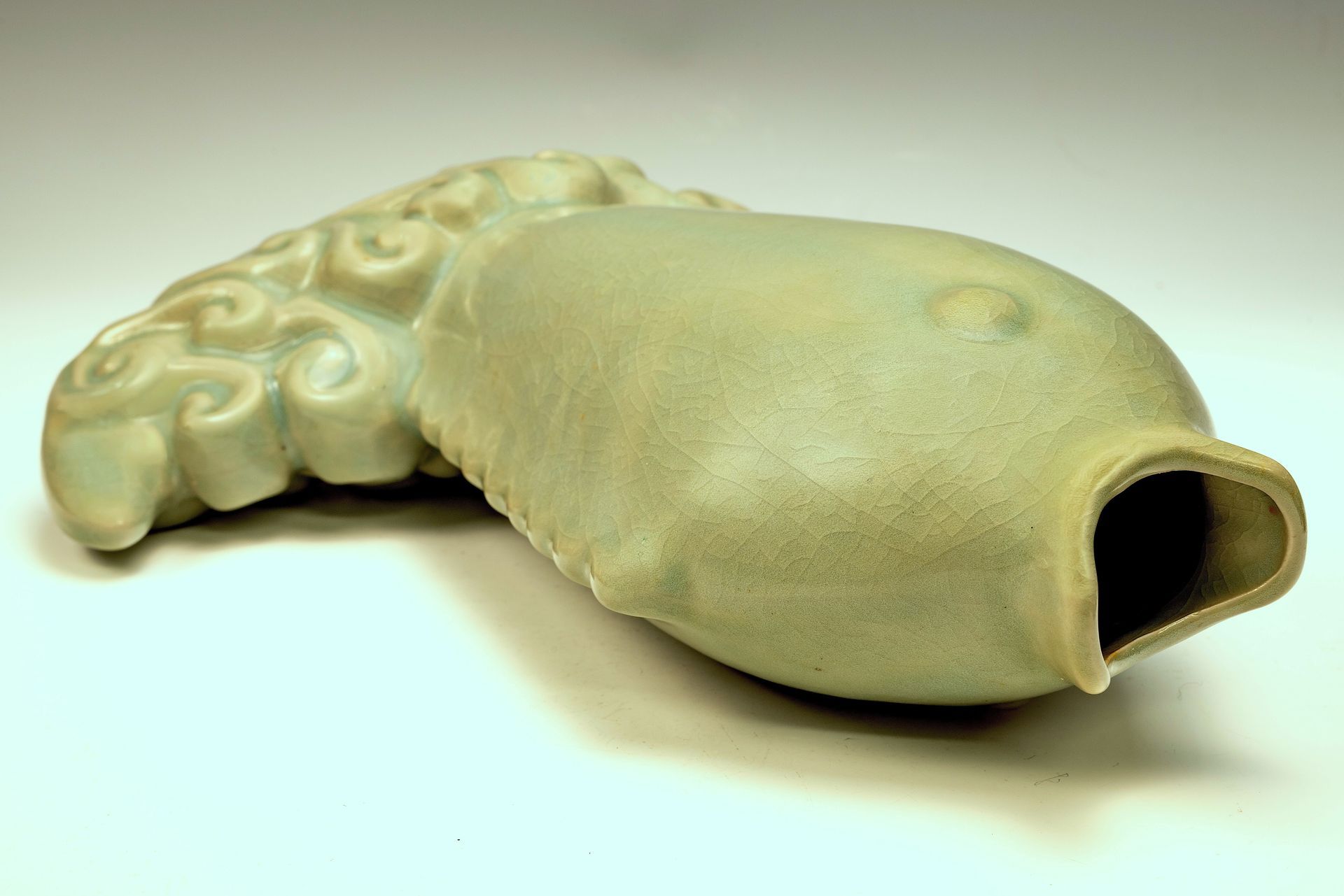 Second Commissioned Rams Head Vase from the Northern Song Dynasty, Featuring Imperial Ru-Ware