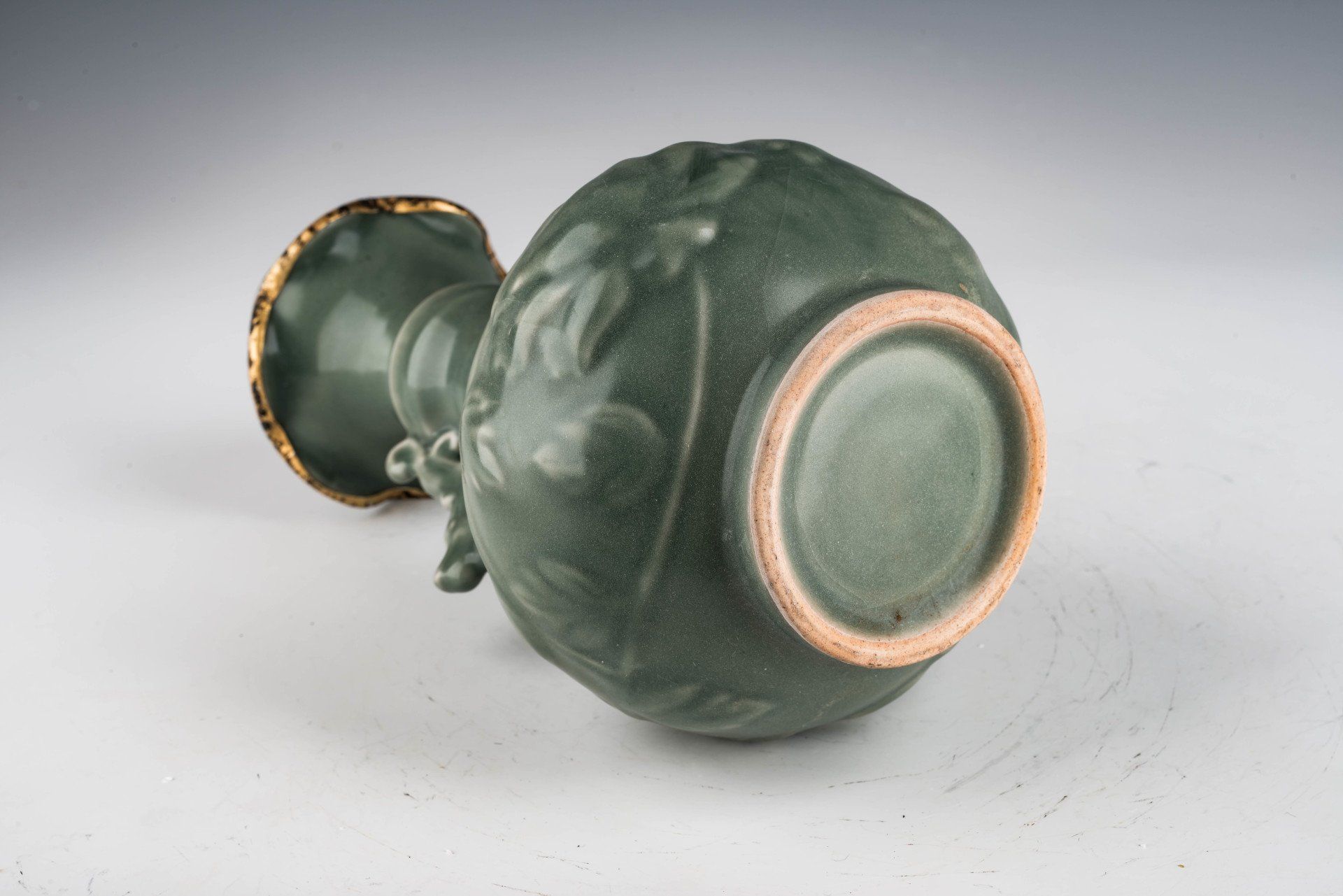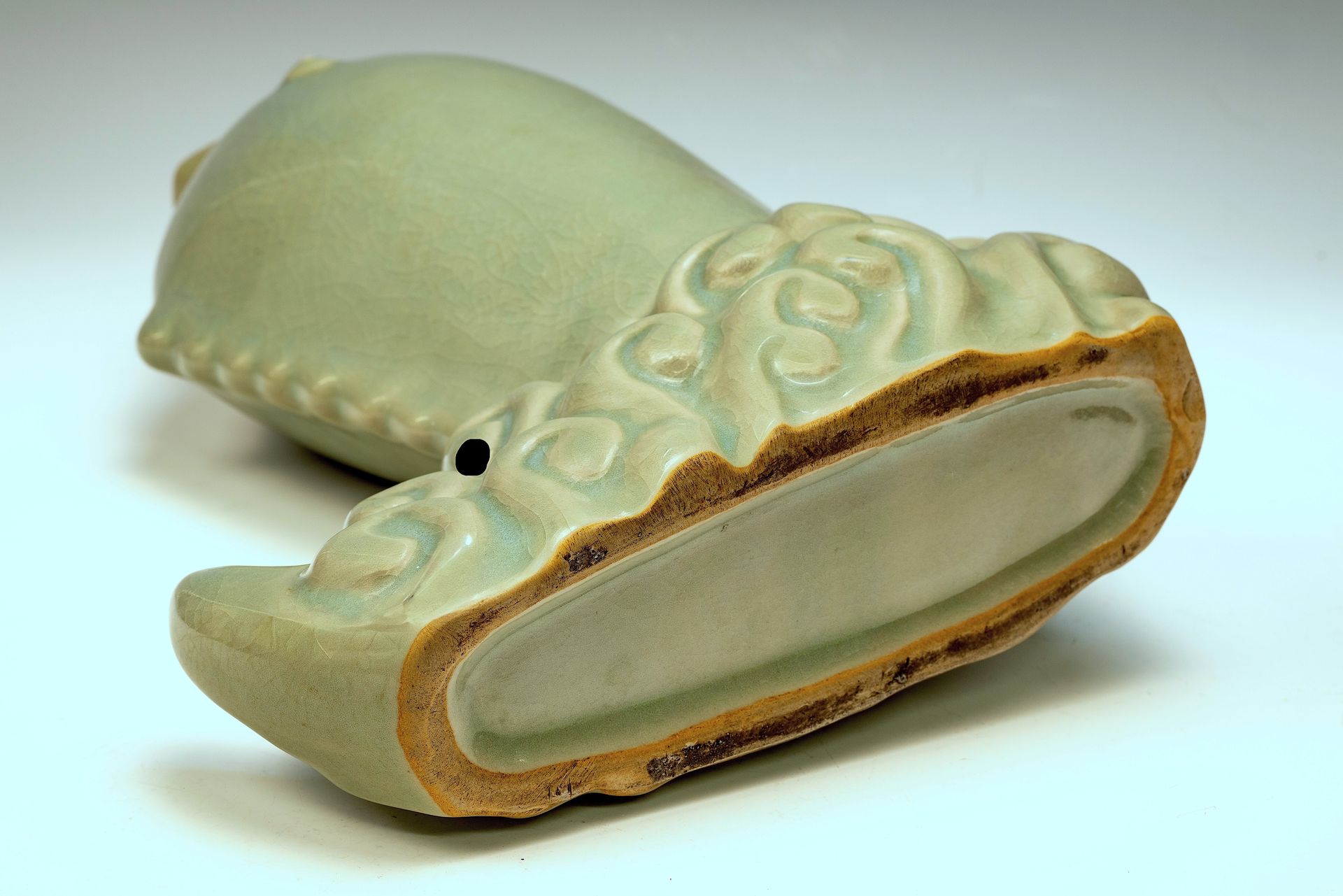 In the aftermath of the Jin Army's incursion into the Northern Song Dynasty, workers from the Imperial Royal Kiln sought refuge in the southern region, with many likely contributing their skills to the Imperial Guan Kilns, while others joined the Longquan Kiln. Notably, this lineage accounts for the visual similarities observed between certain Longquan pieces and the second commissioned Royal Ru Kiln wares, although the Longquan products lack the characteristic crushed agate present in the latter's glazes.