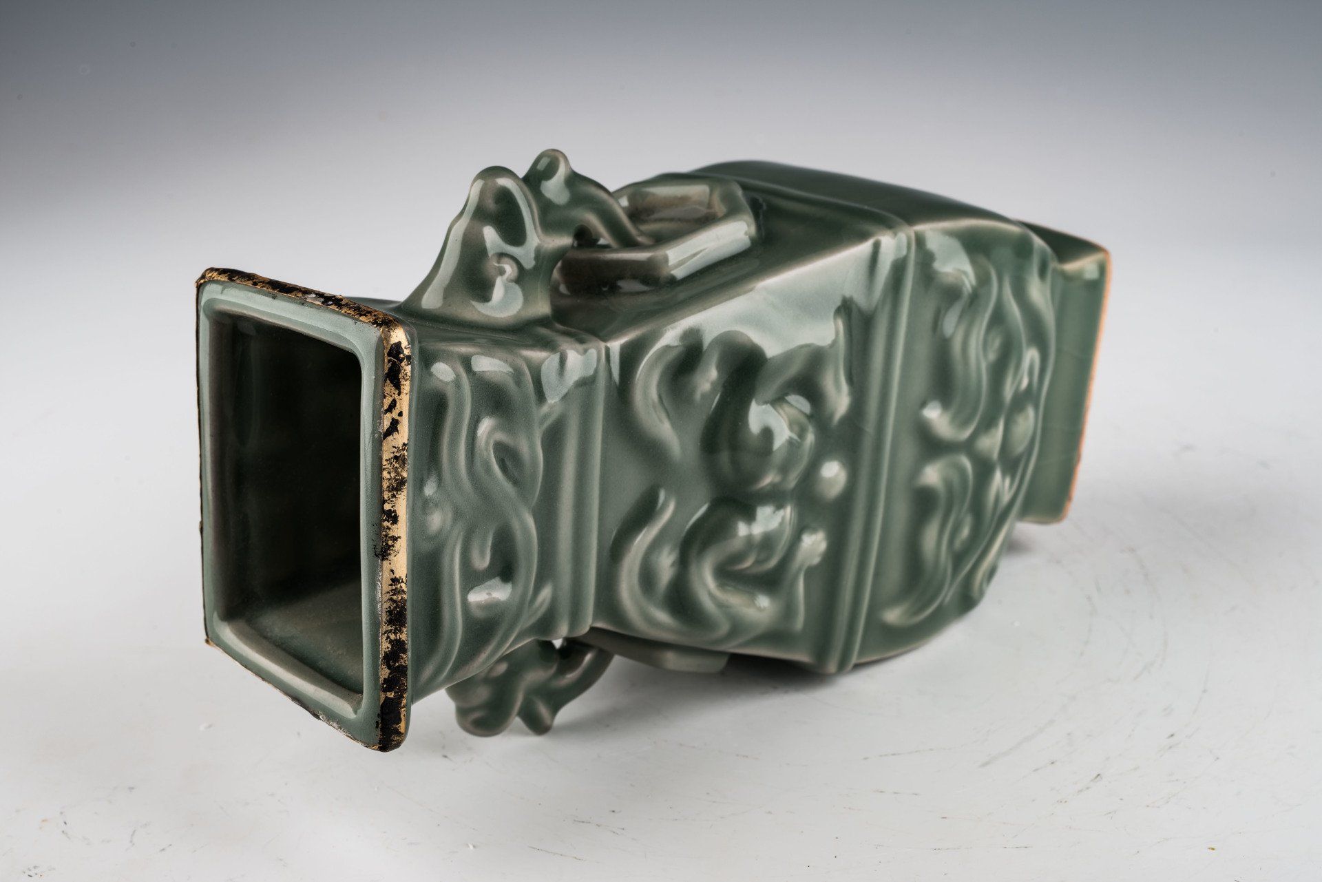 Imperial Royal Ru-Kiln Vase from the Northern Song Dynasty: Rectangular Design with Tubular Handles, Second Commissioning