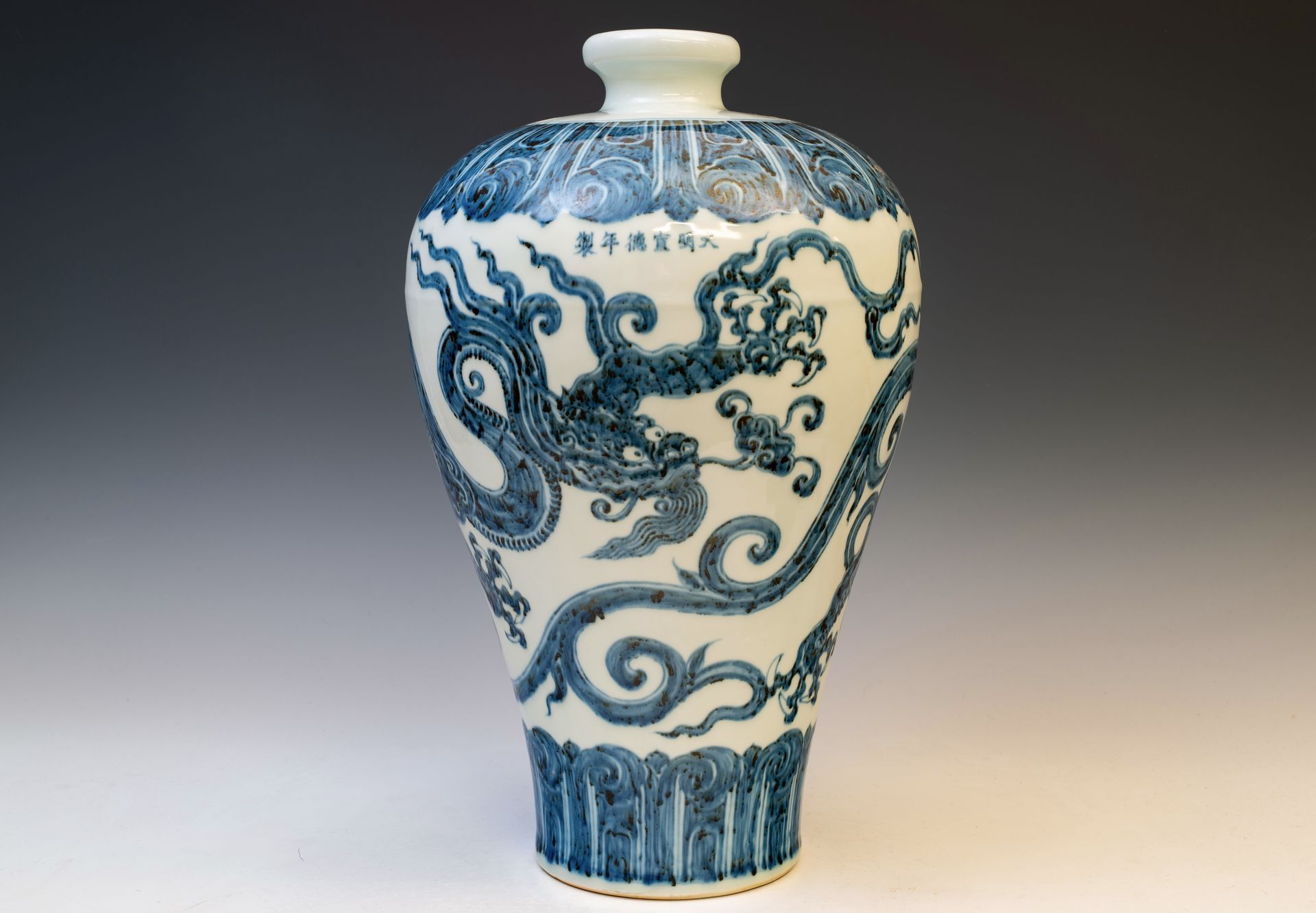 青白宣徳帝印と時代双龍花瓶、明代、15世紀