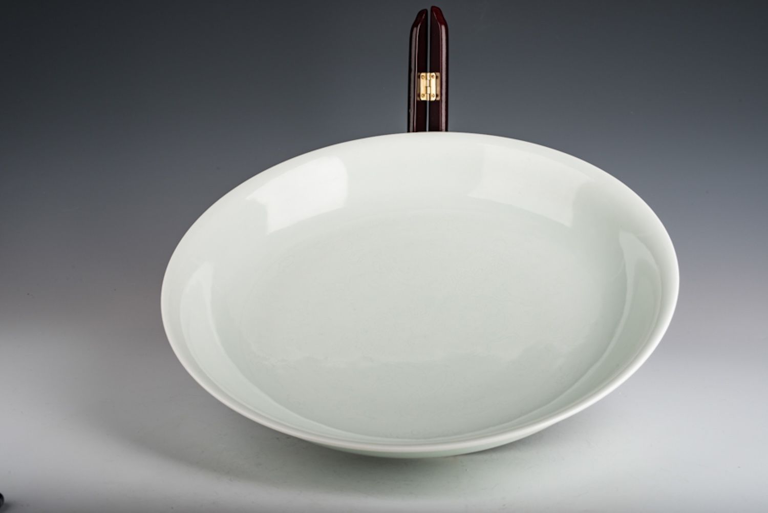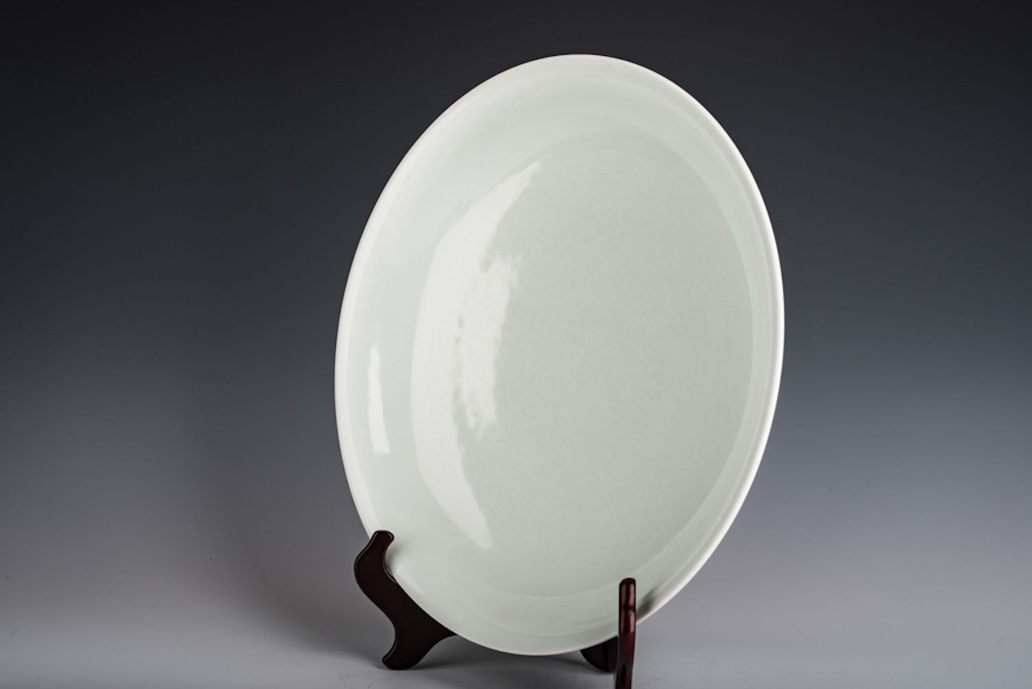 15世紀明代宣徳印の貴重な青白磁と鳥や花の模様が描かれた時代の皿