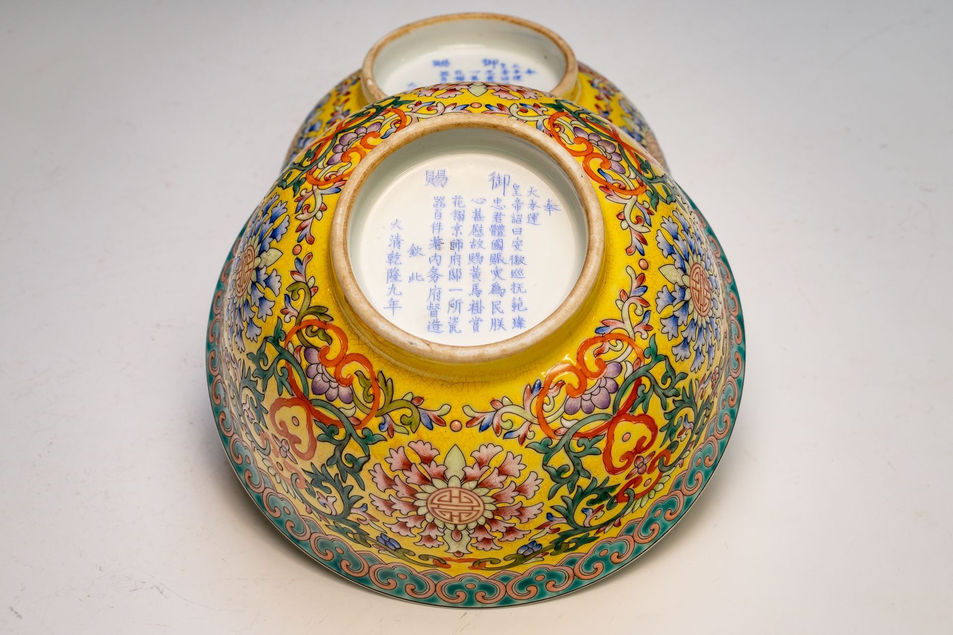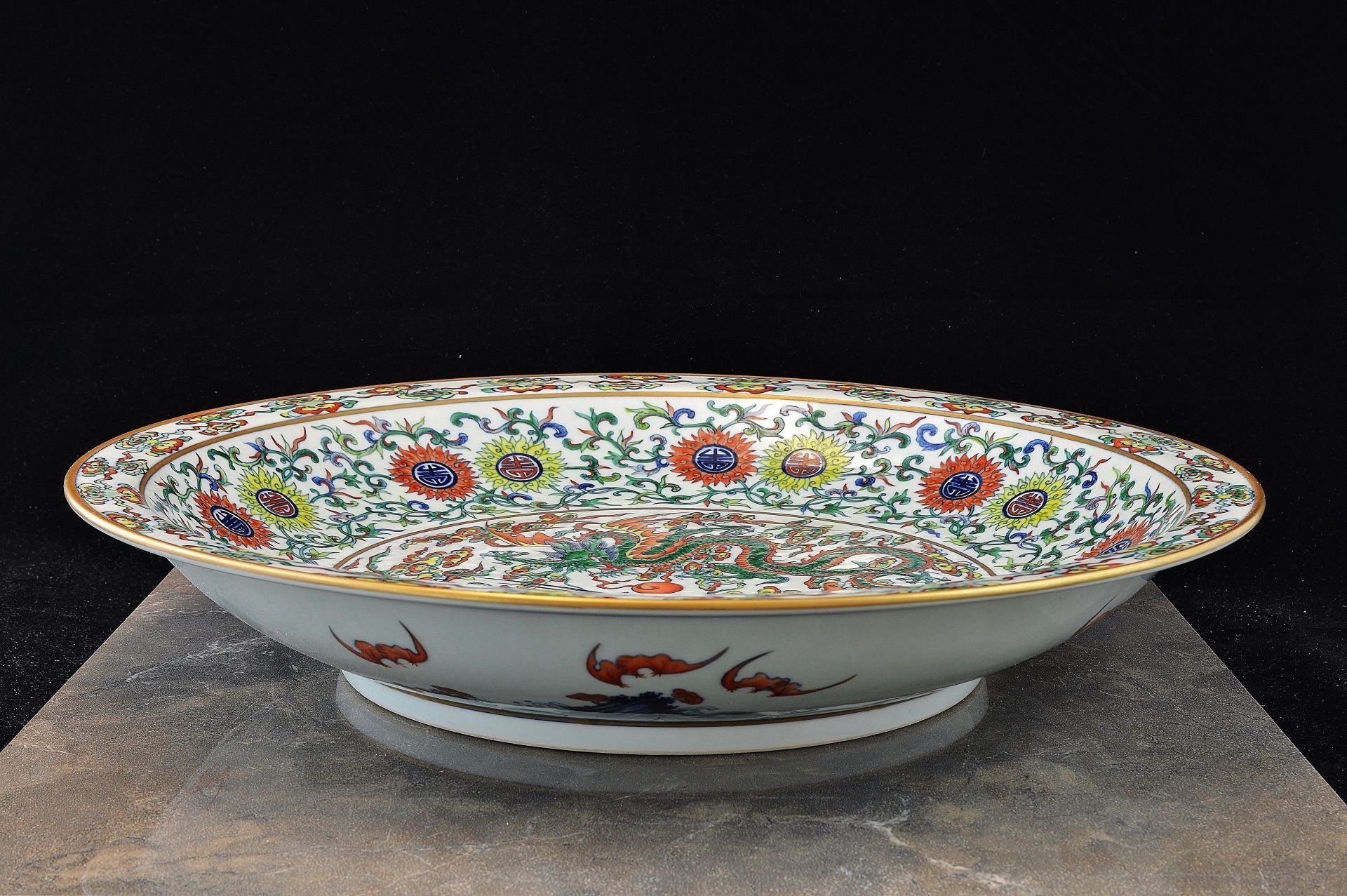 清代乾隆帝時代の皇室御用鉢一対。底に六字銘と詩文が刻まれ、法浪彩釉で作られている。