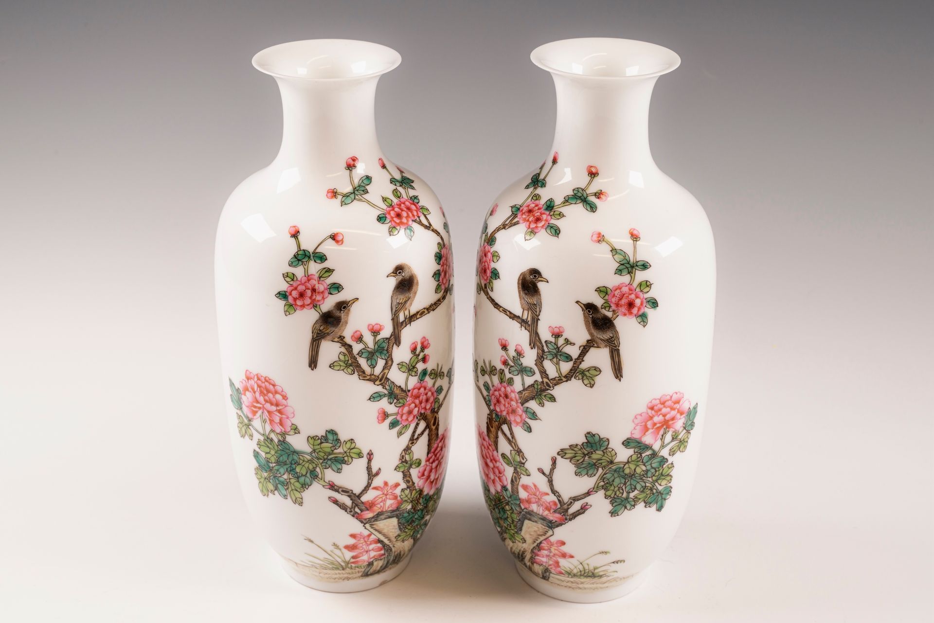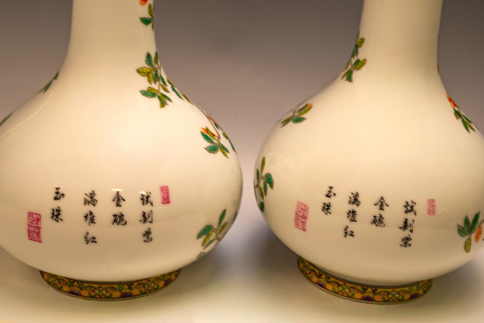雍正帝の刻印と時代を示す清朝時代の法浪彩エナメル梅瓶一対