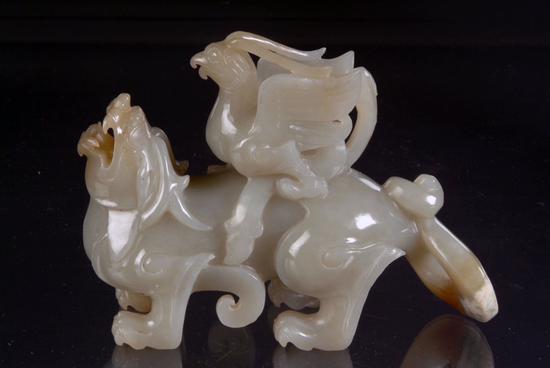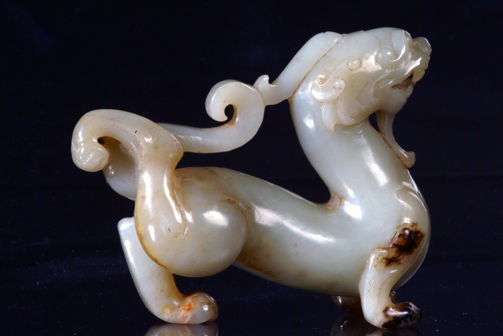 唐代の精巧な白翡翠神話の生き物の彫刻