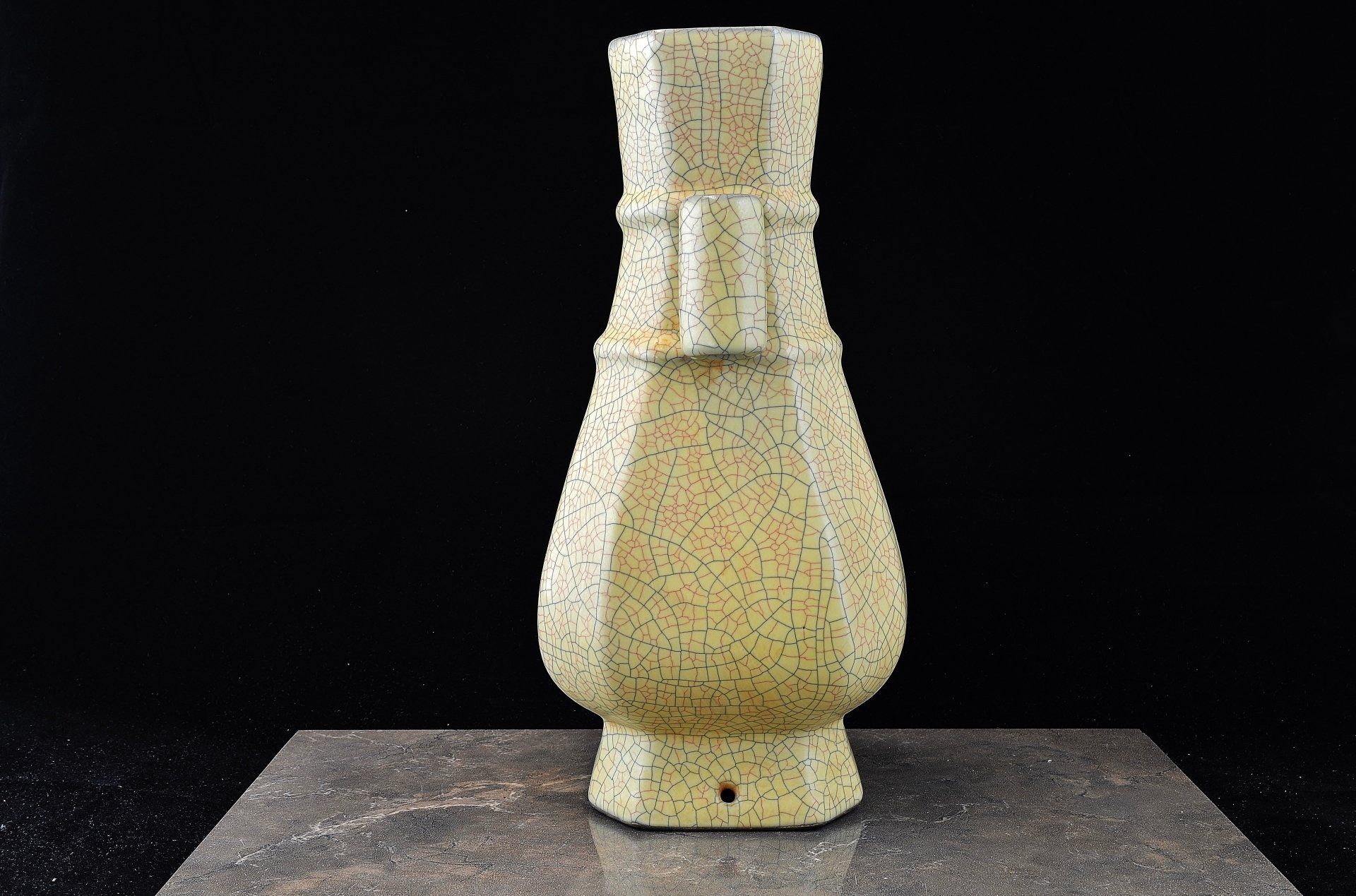 Southern Song/Yuan Dynasty Ge Kiln Ge Ware: Exceptional Large Octagonal Hu-Form Vase with Tube Ears and Golden Thread
