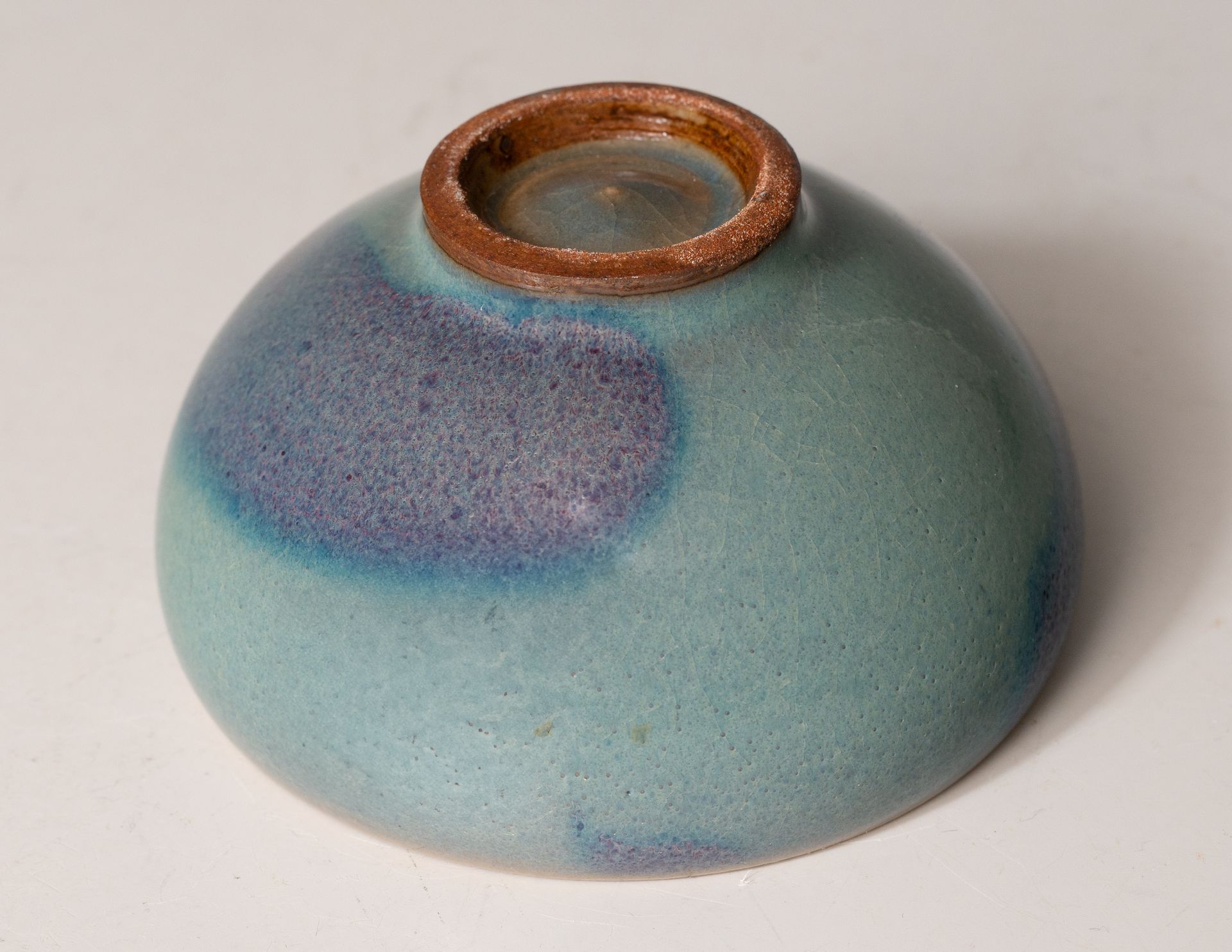Pale Blue Jun Bubble Bowl with Reddish Accents from the