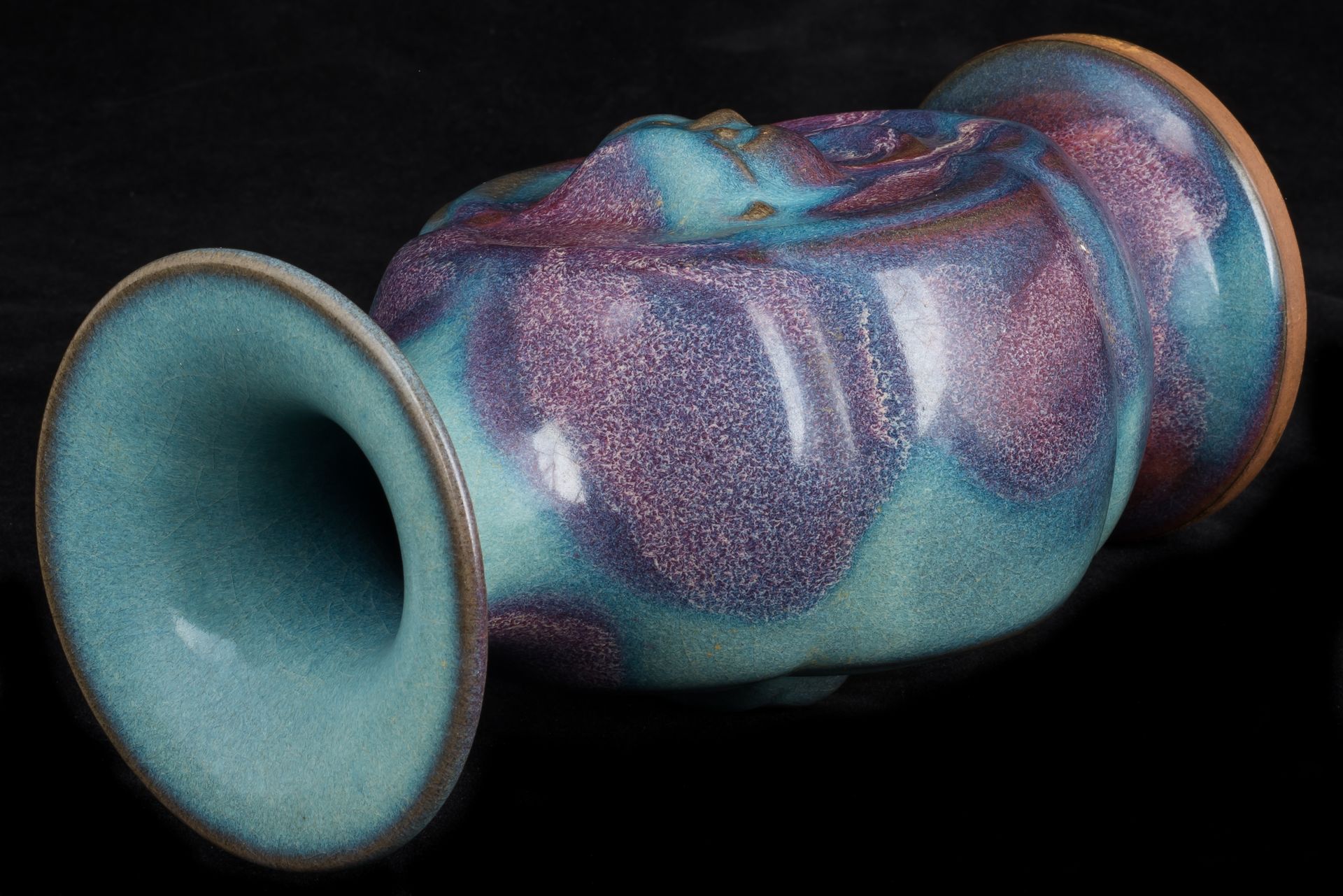 Jun Ware Vase from the Northern Song Dynasty Featuring an Impressed Tiger Head Design