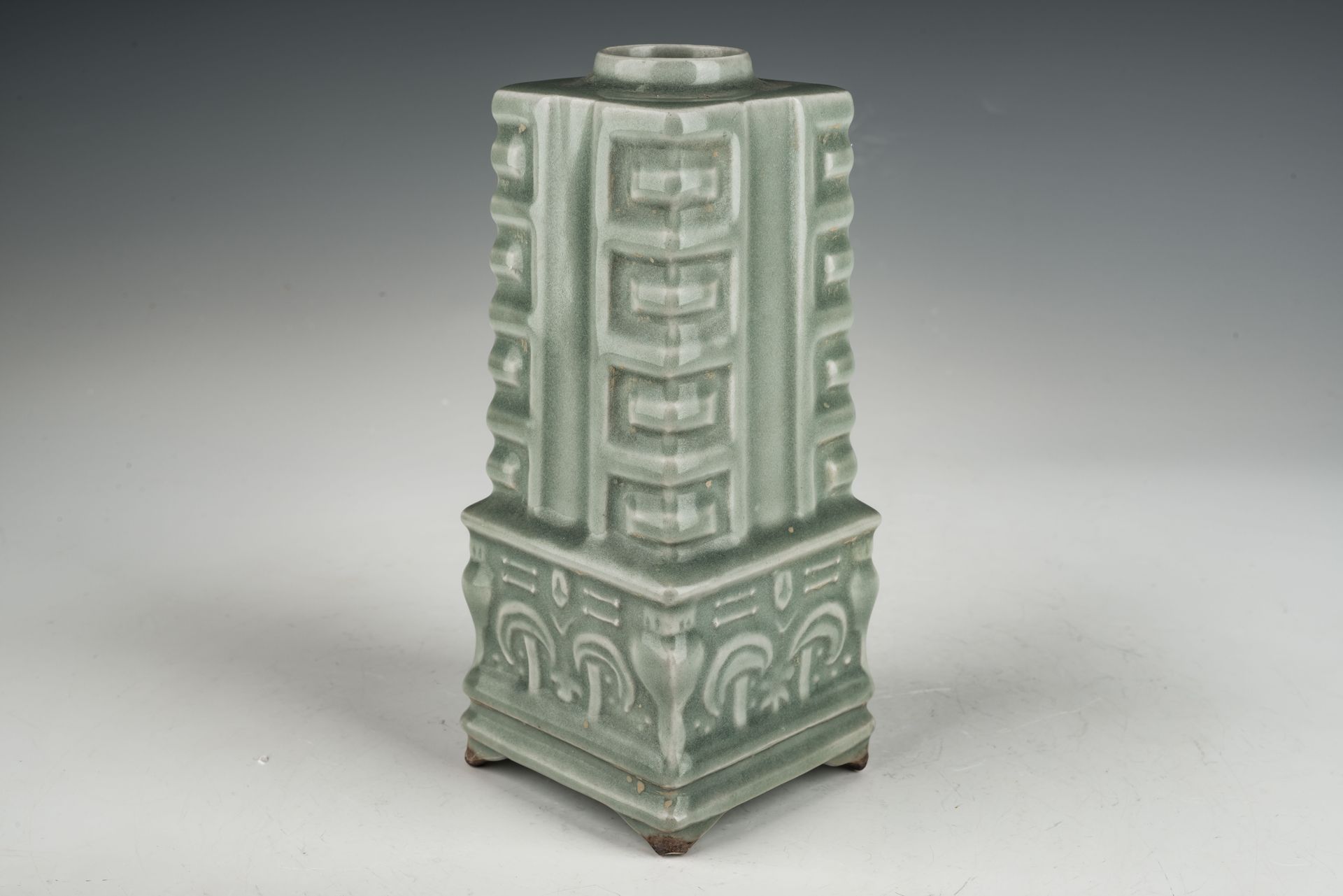 북송시대 황실 여요병: 관형 손잡이가 있는 직사각형 디자인, 2차 위탁