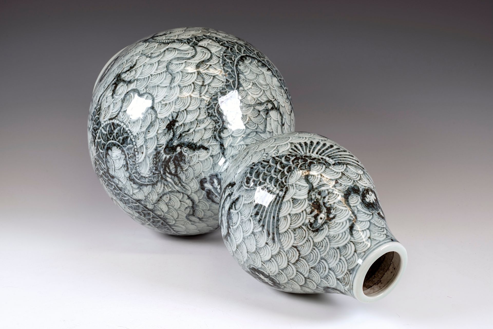 원나라의 인상적인 대형 청화백룡이 그려진 구름병 한 쌍