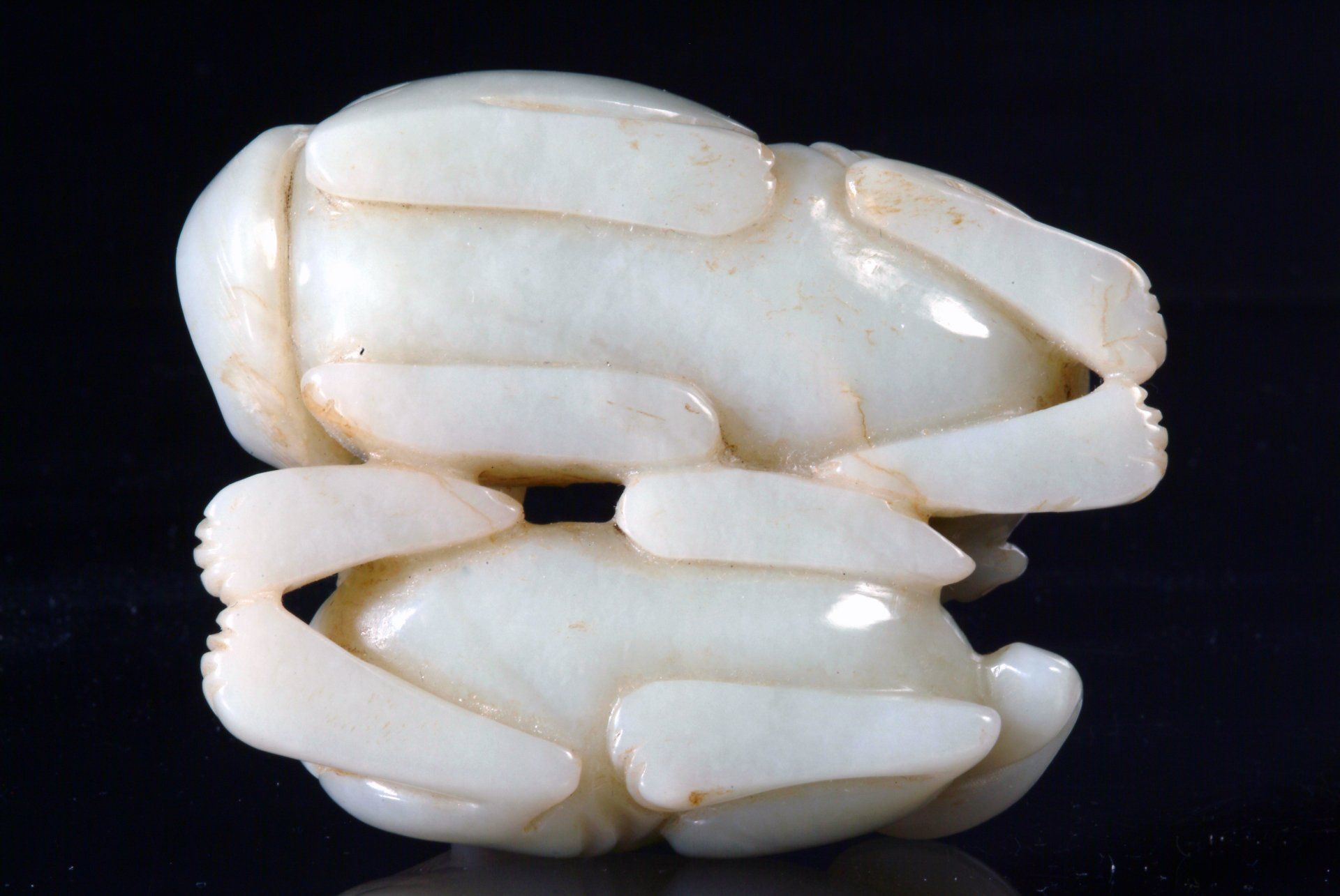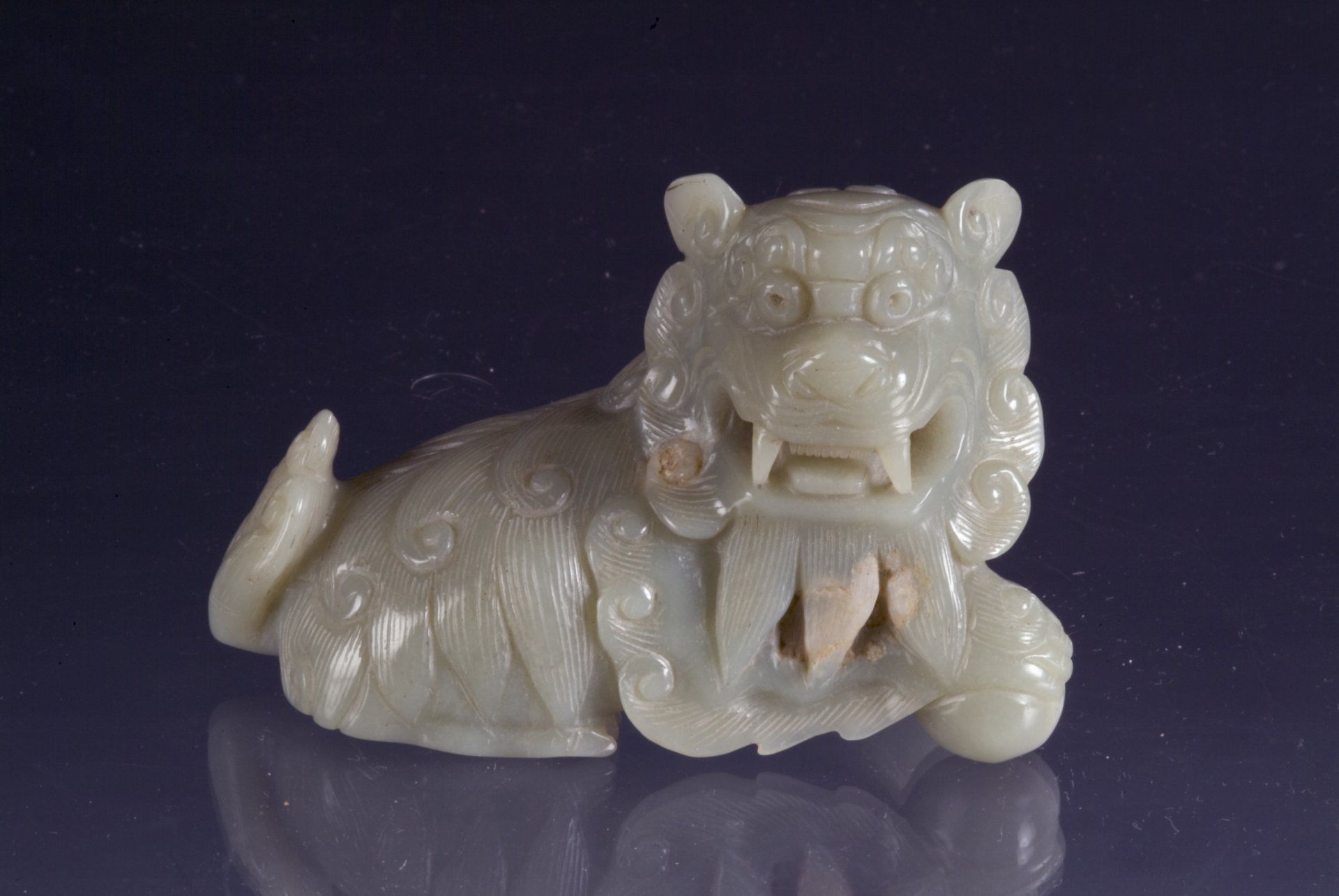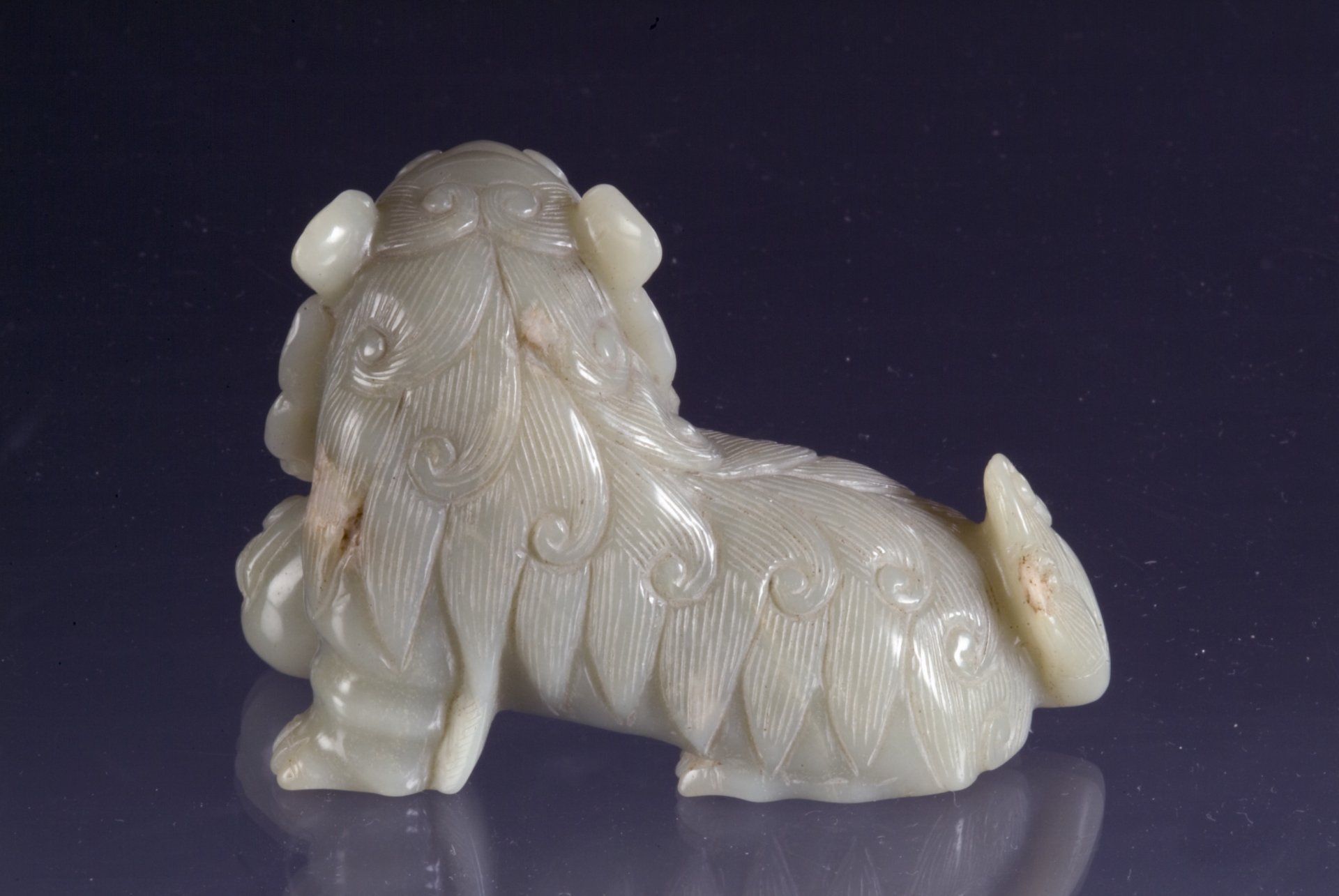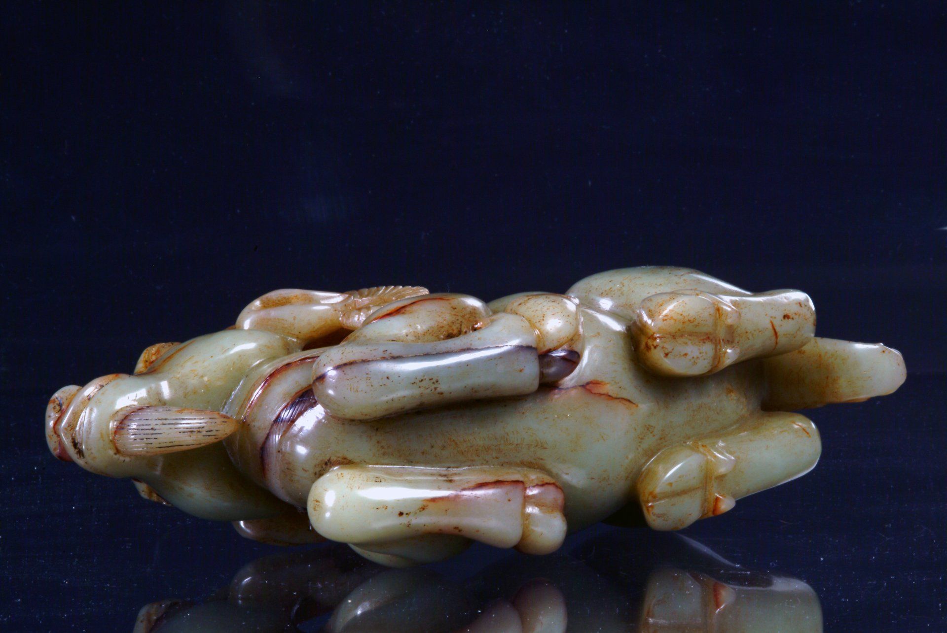 Ming Dynasty Pale Jade Celadon Reclining Mythical Creature and Representation of the Five Poisonous Creatures