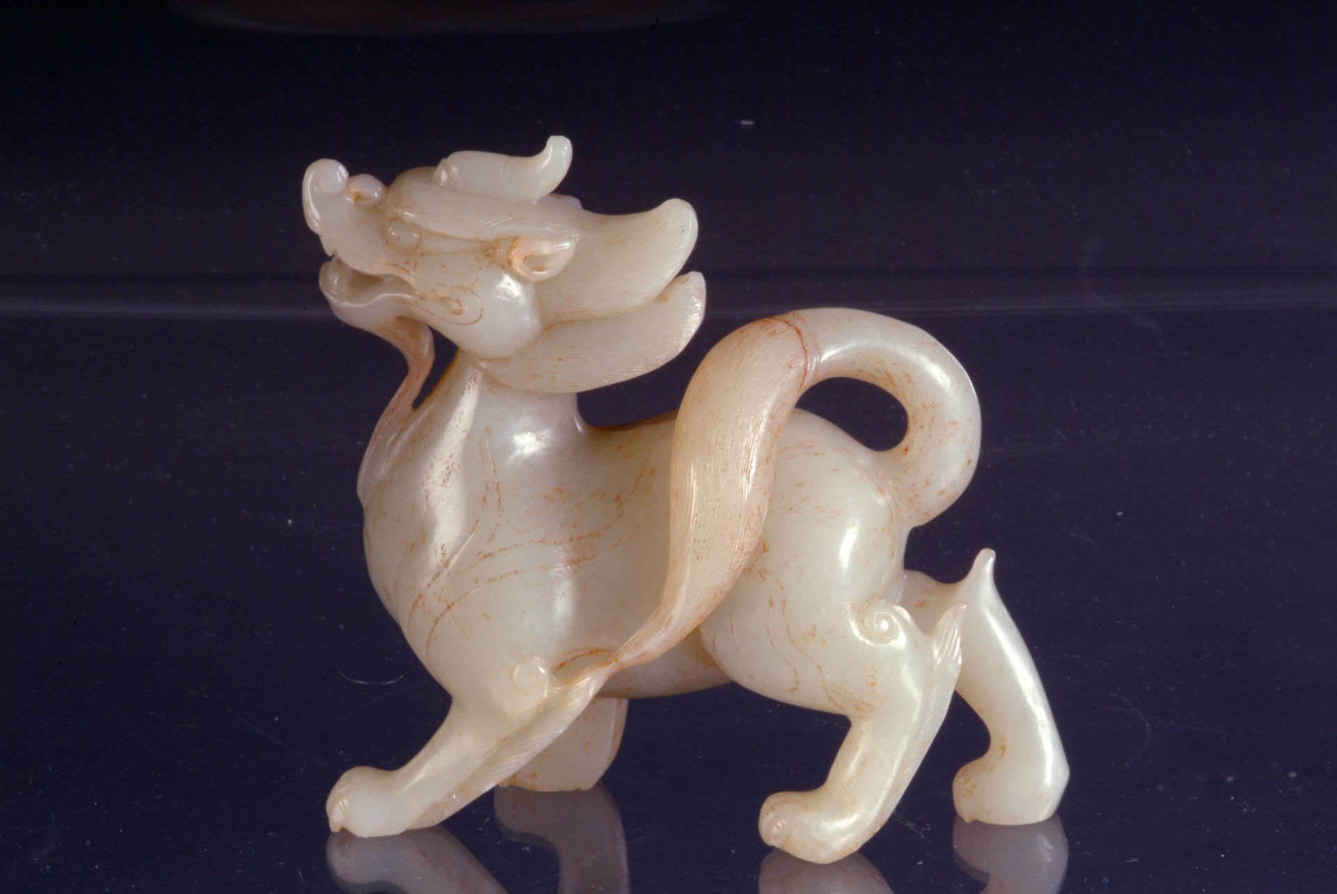Ming Dynasty Grayish White Jade Figurine of a Mythical