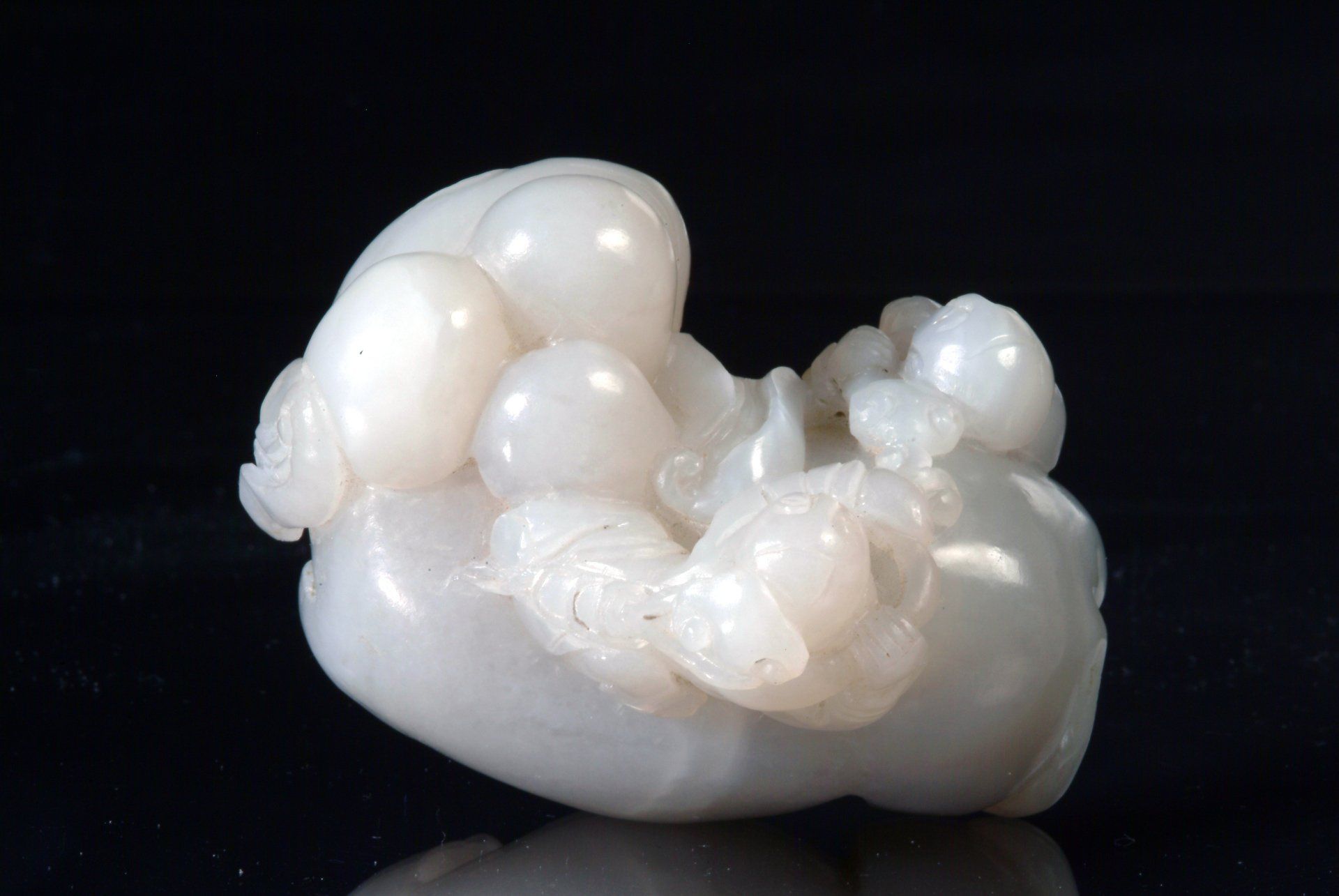 Qing Dynasty White Jade Sculpture Depicting the Three Monkeys