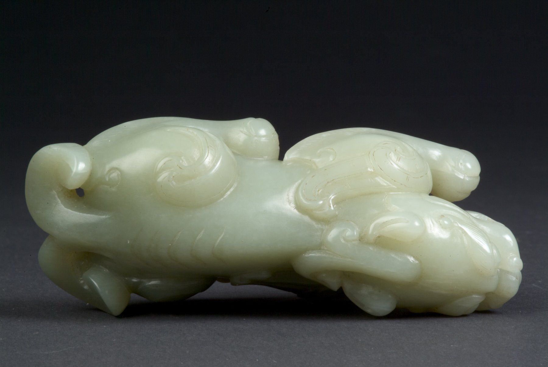 Qing Dynasty Grayish-White Jade Figurine of a Mythical Serpent Creature
