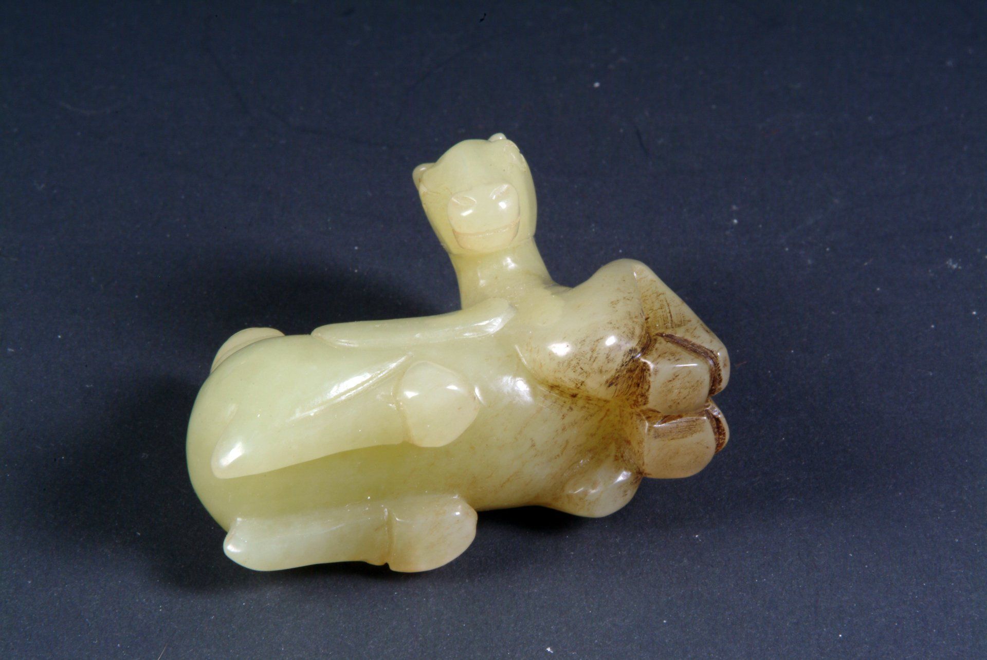 Translucent White Jade Statue of Hound and Pup from the Qing Dynasty